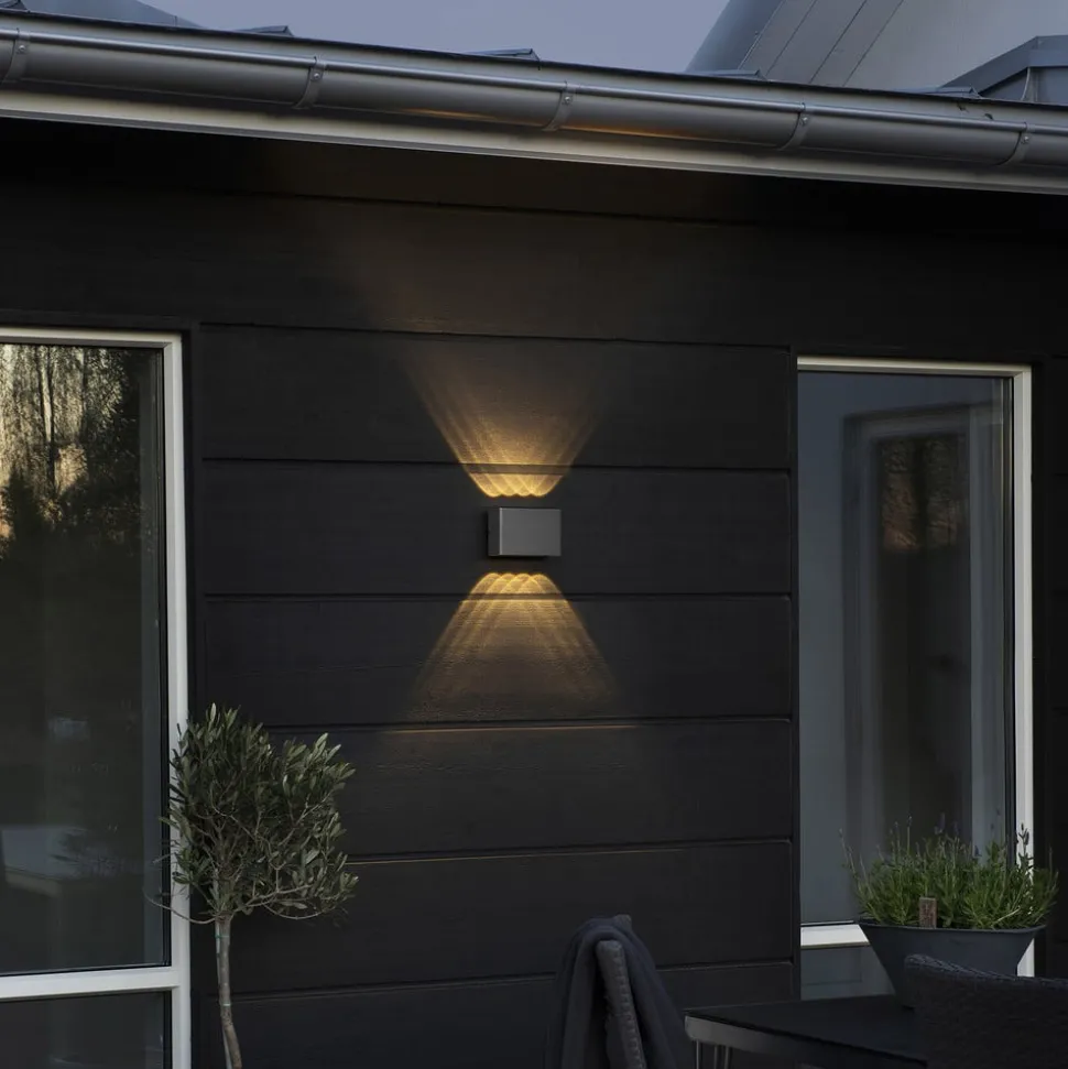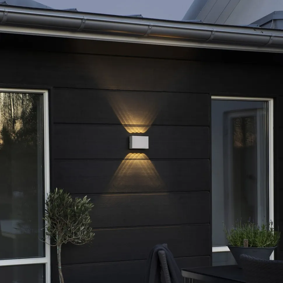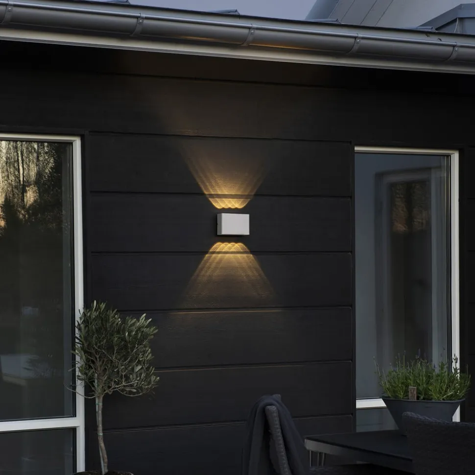 Bij Chieri ligt de nadruk op het speciale lichtkarakter. De buitenwandlamp heeft vier brandpunten, elk aan de boven- en onderzijde, die zich in afzonderlijke, bolle lenzen bevinden. Hierdoor wordt het licht uitgestraald in de vorm van scherp afgetekende kegels. De lichtkegels van de aangrenzende LED’s overlappen elkaar, waardoor een aantrekkelijk op-en-neer effect ontstaat van geometrisch aandoende, verschillend verlichte delen op de gevel. Het ontwerp als een platte kubus van aluminium met eenkleurige poedercoating maakt een harmonieuze combinatie met elk modern woningontwerp mogelijk.