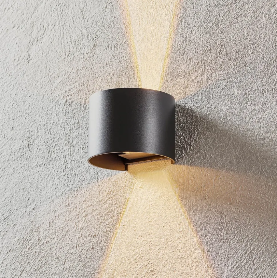 Ronde LED buitenwandlamp Davos met instelbare stralingshoeken Die ronde LED buitenwandlamp Davos van aluminium wordt niet alleen gekenmerkt door haar energiezuinige verlichting, maar ook door haar unieke en instelbare lichteffecten. De op- en neerwaartse stralingshoeken van de armatuur kunnen handmatig worden ingesteld, zodat een individuele, brede of smalle lichtuitstraling in beide richtingen onafhankelijk van elkaar kan worden geselecteerd. Die DAVOS LED buitenwandlamp is uitgerust met warmwitte LED’s en is beschermd tegen stof en spatwater met een beschermingsgraad van IP54.