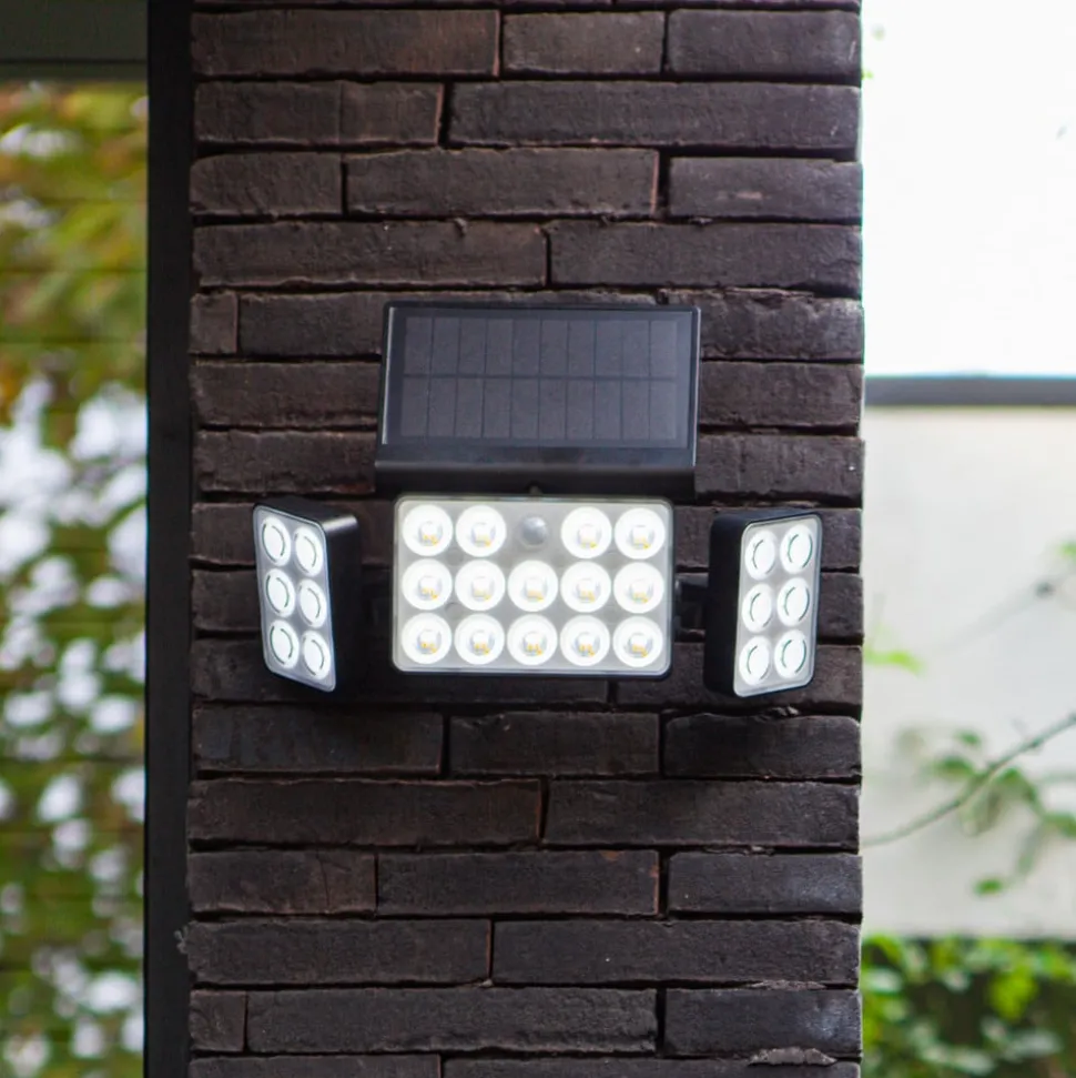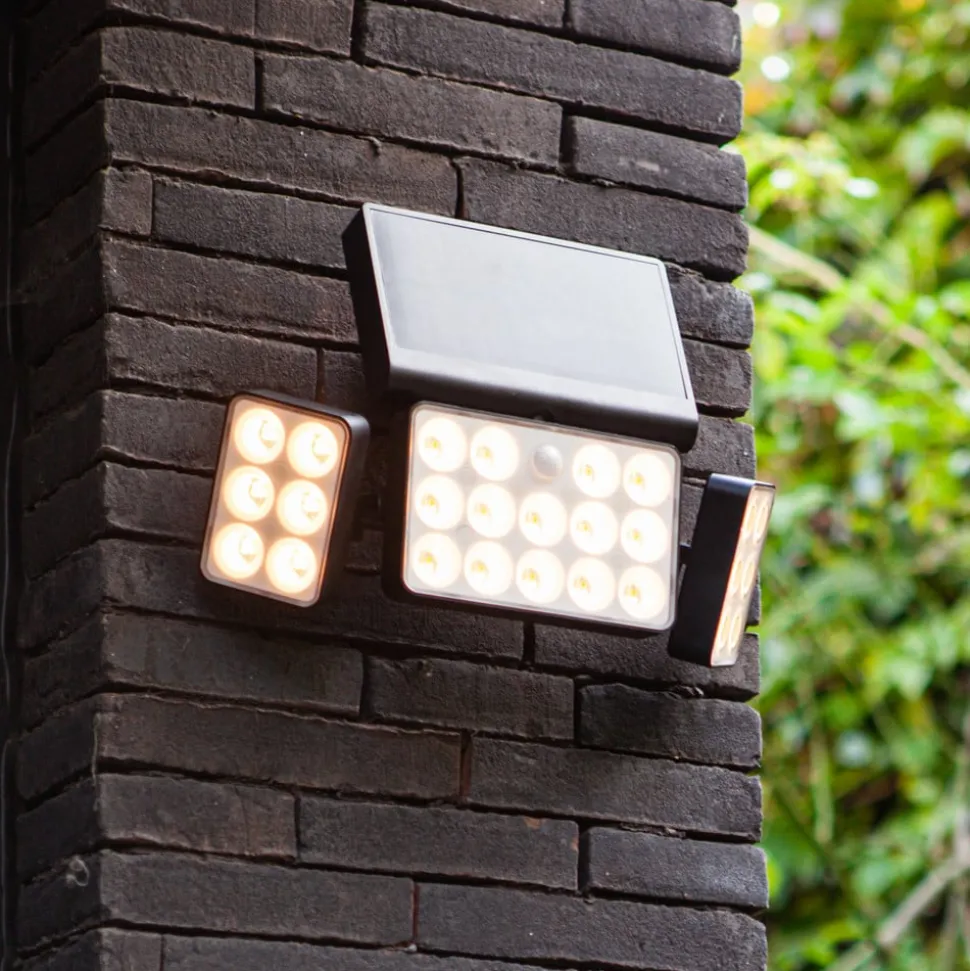 Driekoppige LED buitenwandlamp op zonne-energie Tuda met zonnepaneel en bewegingsmelderTuda is een robuuste en praktische LED buitenwandlamp op zonne-energie gemaakt van kunststof in een eenvoudig zwart kleurenschema. Ze heeft drie koppen met vast geïnstalleerde LED’s die dimbaar zijn en hun lichtkleur kunnen veranderen tussen warm wit (2.700 K) en daglicht (6.500 K). Bovendien heeft Tuda een bewegingsdetector en kan ze naar wens worden gericht voor de perfecte verlichting. De LED buitenwandlamp op zonne-energie wordt krachtig en draadloos bediend met een zonnepaneel. Tuda is ideaal voor het verlichten van een oprit of terras.Technische gegevens- Zonnepaneel monokristallijn 2W- 2 x 2.200mAh 3,7V Li-ion batterij- Bereik bewegingsmelder 10m- Detectiehoek bewegingsmelder 120°Bijzonderheden- Bedienbaar via de gratis Tuya Smart app en de Lutec Connect app (beschikbaar voor iOs en Android) of via een los verkrijgbare afstandsbediening- Compatibel met spraakassistenten zoals Amazon Echo, Google Home (hiervoor is de Lutec Access Box nodig, zie accessoires)