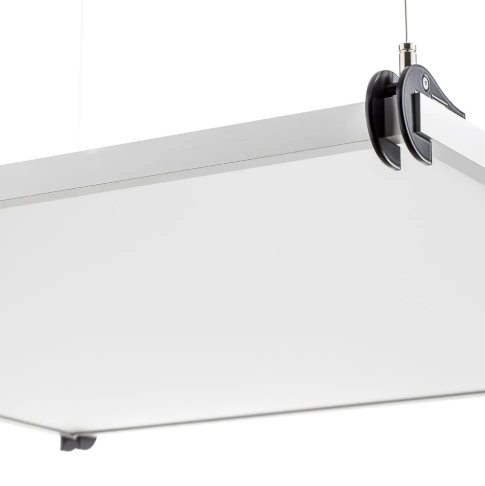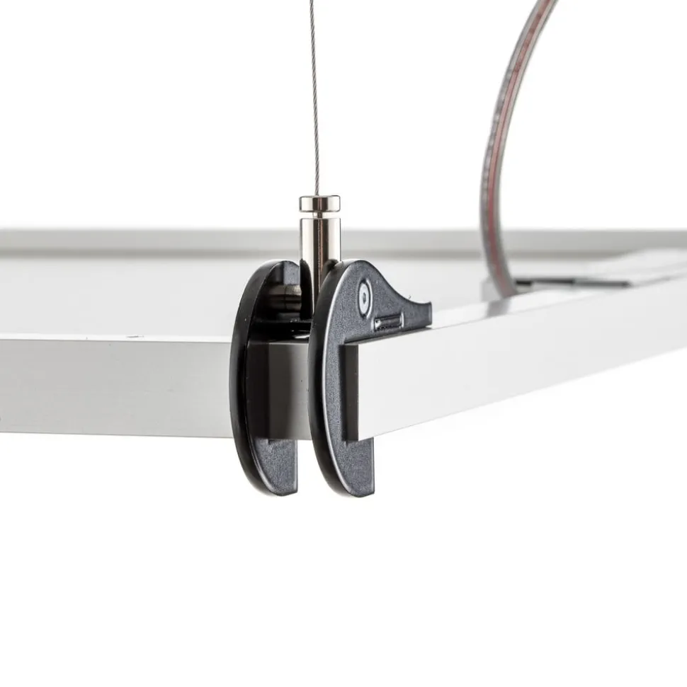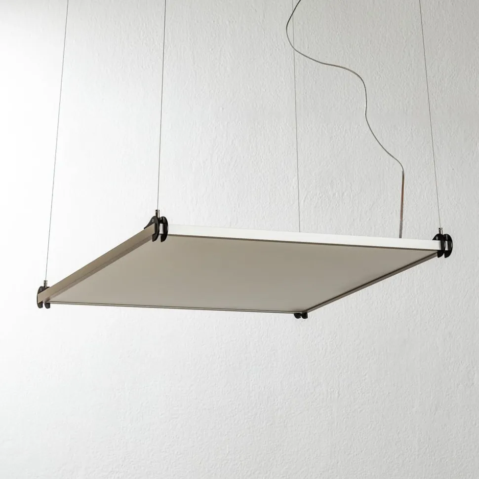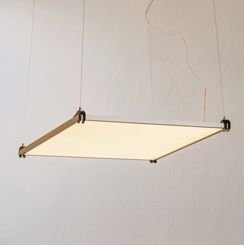 Het progressieve uiterlijk van LED hanglamp Grafa is ontwikkeld door ontwerpers van het in Parijs gevestigde Wilmotte Industries, bekend om hun uitstekende ontwerpen voor architectuur, interieurontwerp, museografie en stedenbouw. Het eenvoudige LED paneel, dat in een frame van geëxtrudeerd mat geanodiseerd aluminium zit, maakt niet alleen indruk met zijn verlichtingseigenschappen, maar ook met zijn innovatieve ophanging – de stalen ophangkabels hangen net als kleine klauwen aan alle vier zijden van het paneel en houden de LED hanglamp Grafa op zijn plaats.