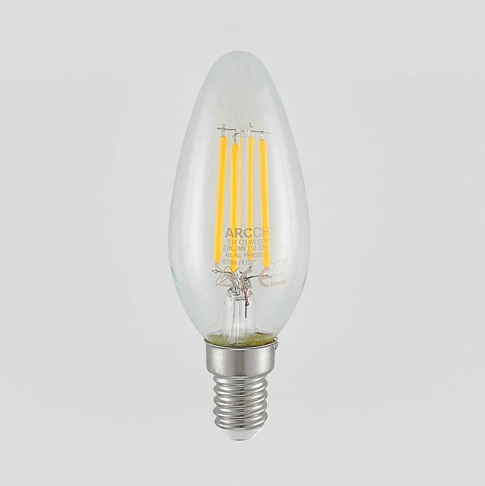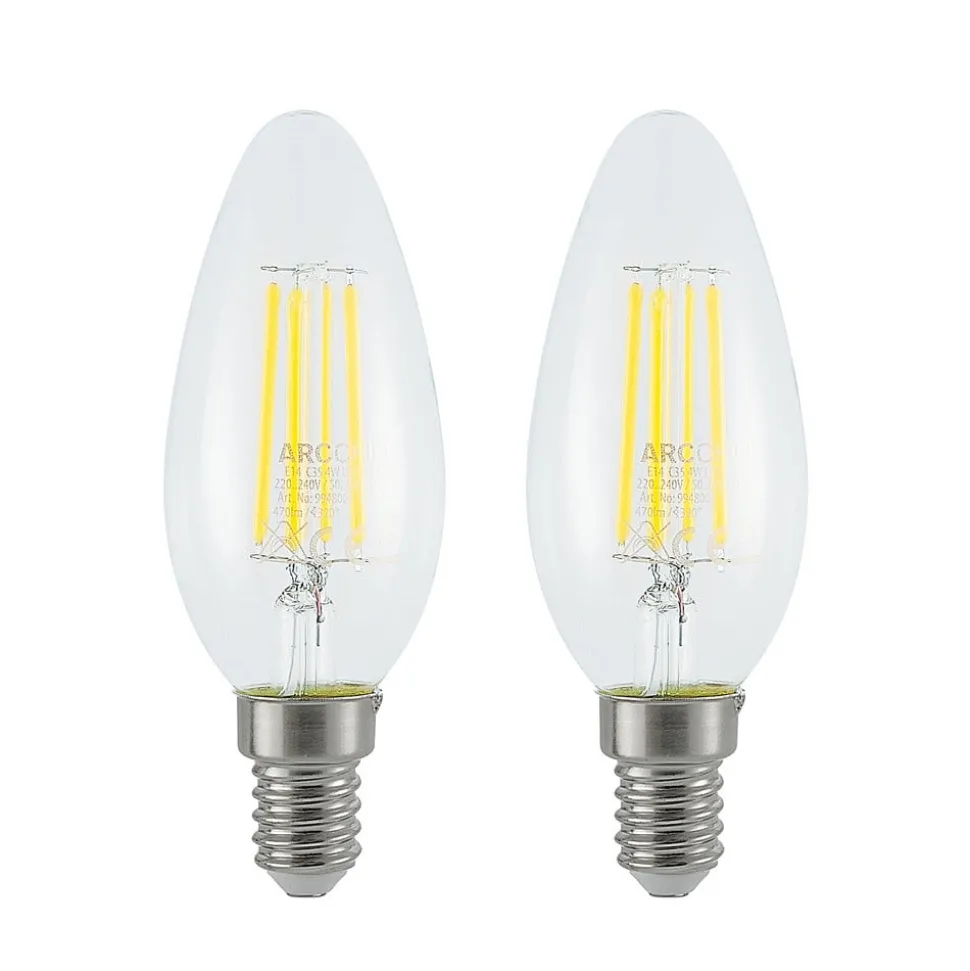 LED-kaarslamp E14 4W gloeidraad, 2.700K, dimbaar in een set van 2Met behulp van de bestaande lichtschakelaar kan deze lamp niet alleen worden in- en uitgeschakeld, maar ook op drie helderheidsniveaus worden geschakeld (100%, 55% en 20%).De decoratieve kaarslamp met helder glas en gloeidraadtechnologie is perfect voor kroonluchters en open vormgegeven armaturen.- De lamp wordt geleverd in een praktische set van 2