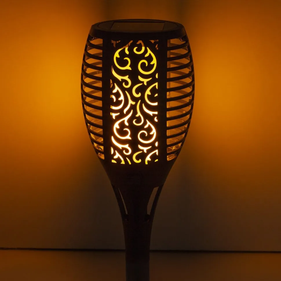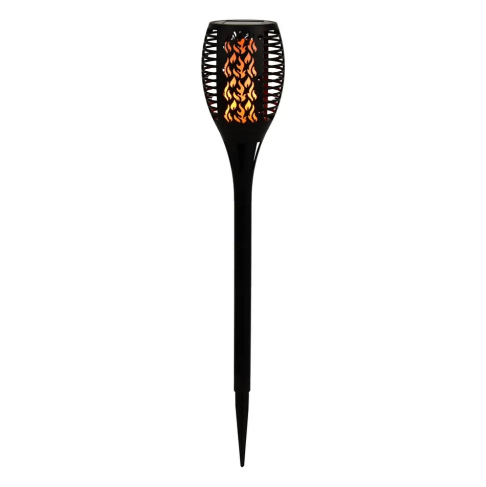 LED grondspies lamp 33077 met fakkeleffect De lamp op zonne-energie in fakkelontwerp met lange grondspies en decoratieve opengewerkte kap heeft extra warme LED’s die het effect van een vlam imiteren.