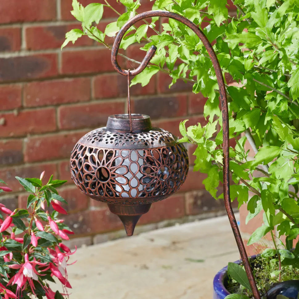 Met zijn oosterse lantaarnontwerp en flikkerende LED-licht zorgt de LED-zonnelamp op staander Osman voor een bijzonder effect in de tuin. Overdag betovert hij met zijn bronskleurige en filigraan bewerkte design, ’s nachts tovert hij een adembenemende verlichtingssfeer tevoorschijn door prachtige licht- en schaduwspelen. Dankzij de werking op zonne-energie en de praktische grondpen kan hij op talrijke plaatsen in de tuin worden geplaatst.