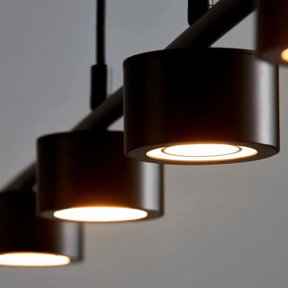 Het warmwitte licht wordt door de naast elkaar geplaatste koppen naar beneden uitgestraald en zorgt zo voor een effectieve directe verlichting, bijvoorbeeld boven een eettafel. In de pendelarmatuur Clyde is een drietraps dimfunctie geïntegreerd, die via de normale wandschakelaar kan worden bediend. Hiermee kan de helderheid worden verminderd van 100 % (1 x schakelaar) tot 50 % (2 x schakelaar) of tot 25 % (3 x schakelaar).