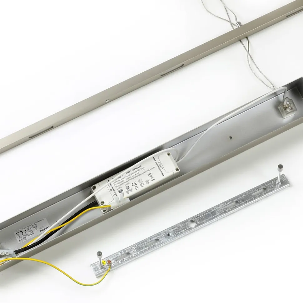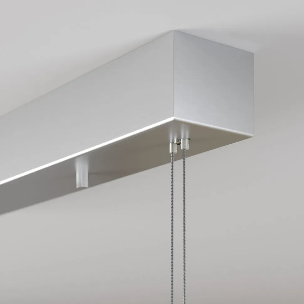 Drietraps dimbare LED hanglamp Arnik met een lineaire look De hoogte van de Arnik afhanghoogte kan naar wens worden aangepast (110 cm – 210 cm), omdat de LED hanglamp een geïntegreerd kabelmechanisme heeft. Het is ook mogelijk om de helderheid in drie stappen aan te passen. Om deze functie te bedienen, heb je alleen een normale wandschakelaar nodig en hoef je geen extra accessoires te installeren, zodat je meteen beschikt over de voordelen van een dimbaar licht. Het discrete nikkelen ontwerp met het matte oppervlak past goed bij allerlei woonstijlen in een moderne look en straalt een subtiele koelte uit.
