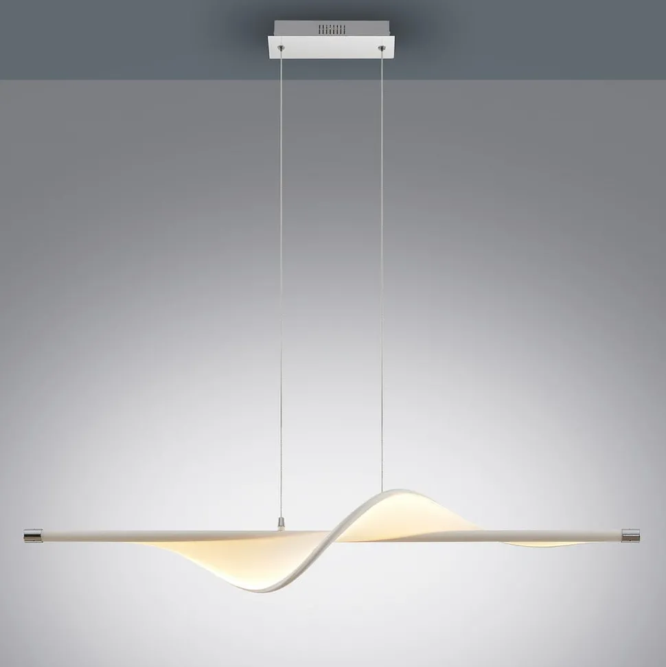 Grote textielen hanglamp Edano in een geweldig design, met stapsgewijze dimfunctie De LED hanglamp Edano is zeer ongewoon door enerzijds haar grootte en anderzijds haar speciale design. De lange kap van textiel ziet er met haar rondingen zeer interessant uit en roept associaties op met de vleugels van een zeeman in de wind. De kap bevat warmwitte LED’s die kunnen worden gedimd zonder een dimmer te hoeven installeren met een conventionele wandschakelaar. Door de schakelaar meerdere keren in te drukken, kan het licht in drie helderheidsniveaus worden geschakeld (100 %, 40 % of 10 %), de vierde schakelhandeling schakelt het armatuur uit. 3-staps dimbaar + uit: Met een wandschakelaar kan het armatuur op de gebruikelijke manier worden in- en uitgeschakeld. Dankzij de 3-staps dimtechnologie met geïntegreerde uit-functie kan het armatuur ook tot drie verschillende helderheidsniveaus worden gedimd door meerdere keren op de schakelaar te drukken: 100 %, 40 % en 10 %.