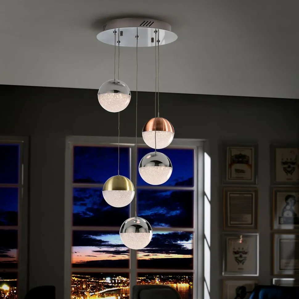 LED-pendelarmatuur Sphere met vijf lampen en inspirerend lichteffect