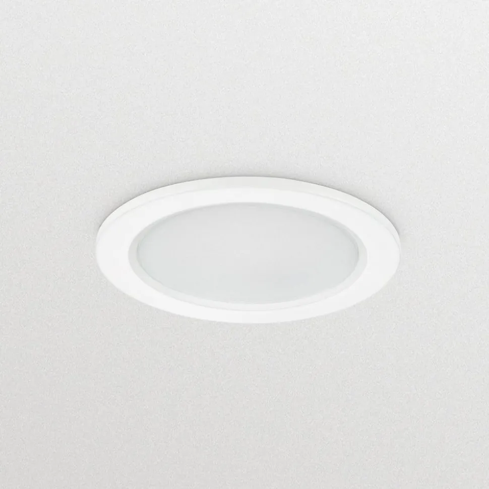 Vlakke LED plafond inbouwlamp DN145B, IP44, aan/uit De DN145B inbouwdownlight uit de CoreLine-reeks van Philips is ontworpen voor homogene algemene verlichting van grote oppervlakken en kan dankzij de spatwaterdichte bekleding aan de kamerzijde ook worden gebruikt in badkamers en wasruimten naast gangen. Het aluminium frame heeft een zeer lage totale hoogte en bevat een opalen kunststof diffusor die het licht van de LED-module onder een brede hoek uitstraalt – Inclusief voorschakelapparatuur (extern, PSU, aan/uit) – Omgevingstemperatuur tijdens gebruik: 0 °C tot + 35 °C – Beschermingsgraad: IP44 ruimtezijde, IP20 achterzijde – Slagvastheid: IK02 – 2-polig aansluitblok