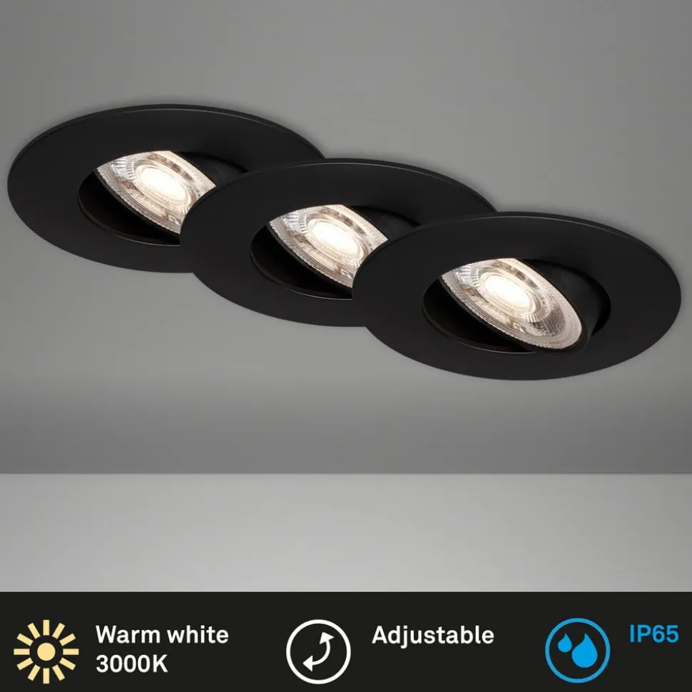 LED inbouwspot 7602 3er IP65 3.000 K zwart