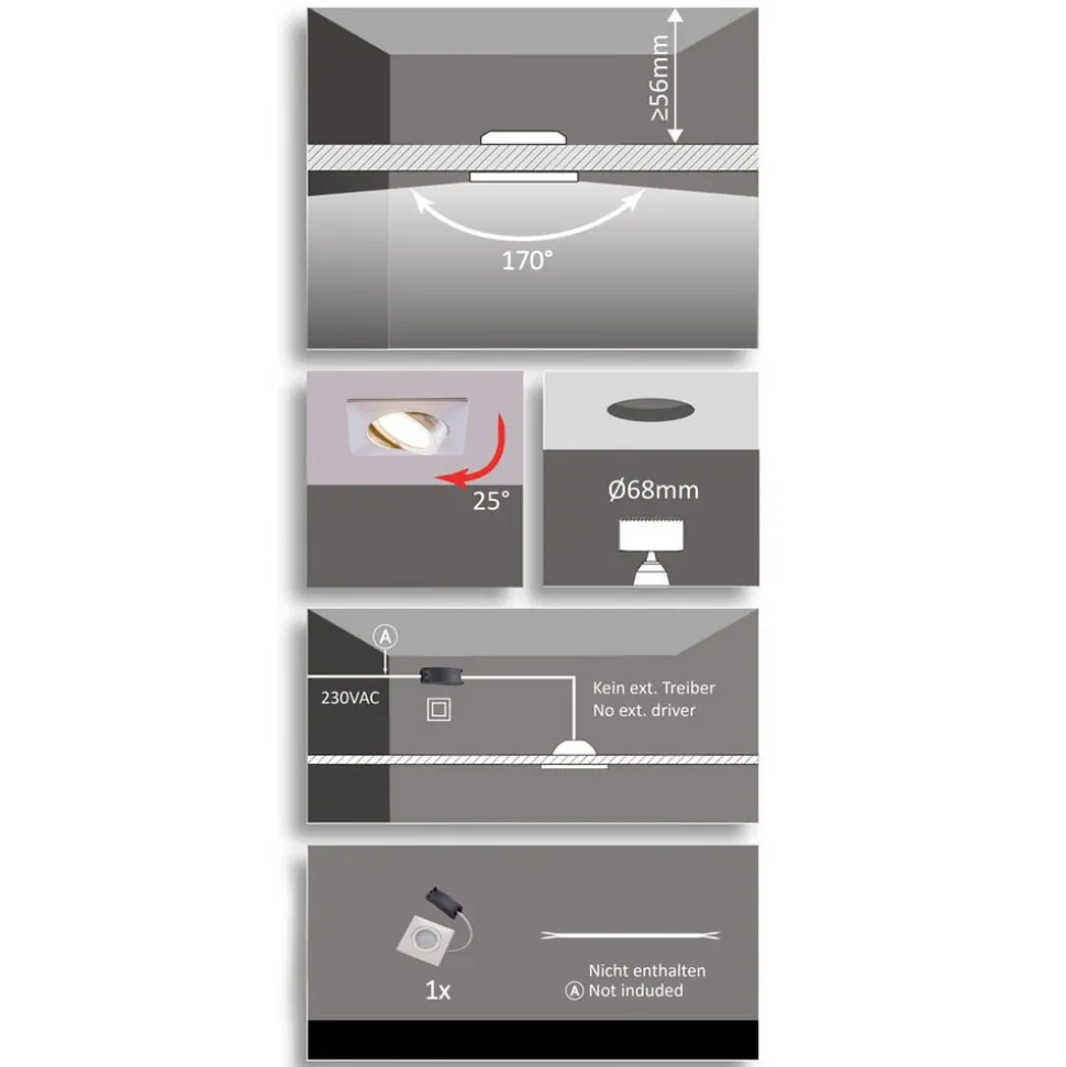 Hoekige LED inbouwlamp Andrej met zwenkbaar inzetstuk