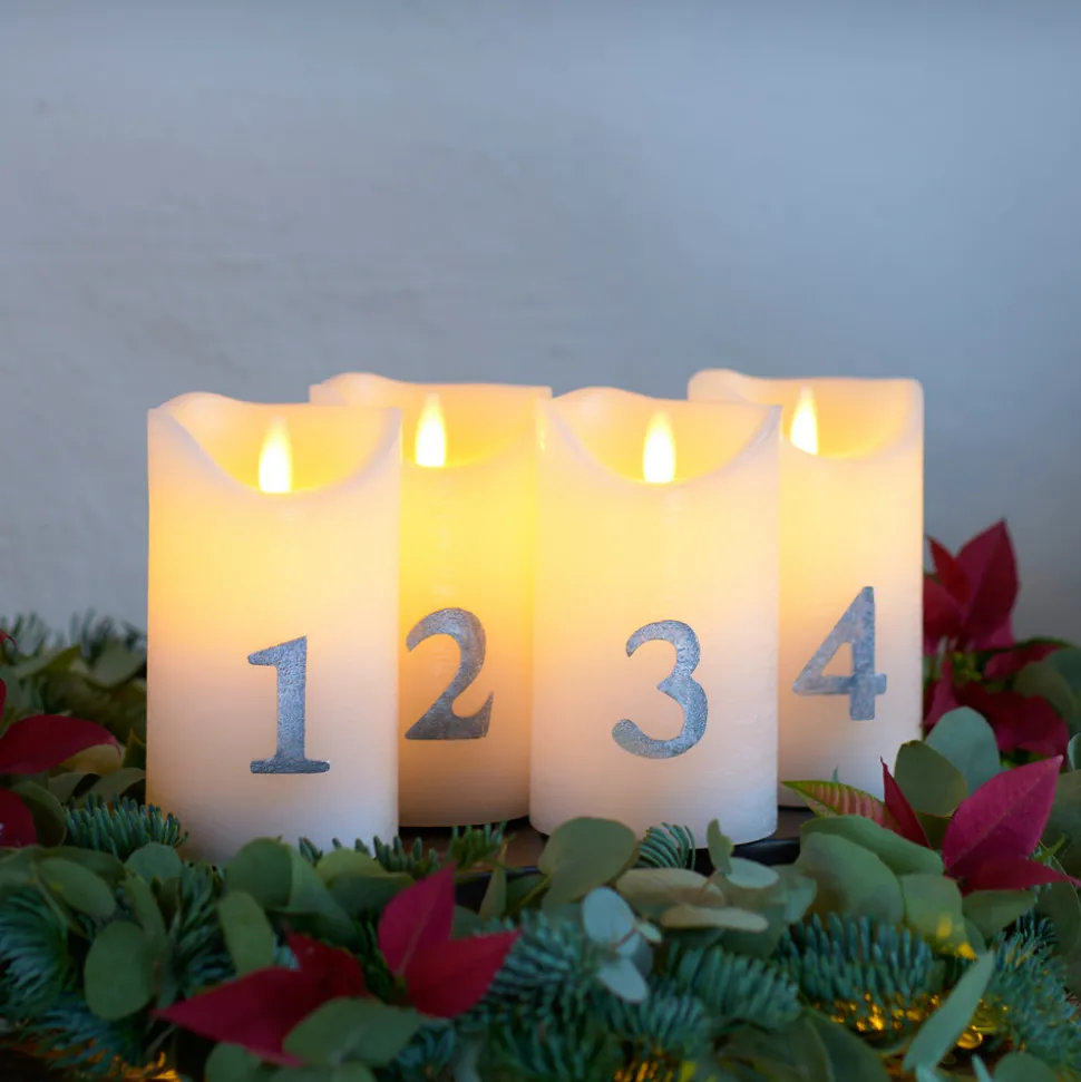 LED kaars Sara Advent 4st hoogte 12,5cm wit/zilver