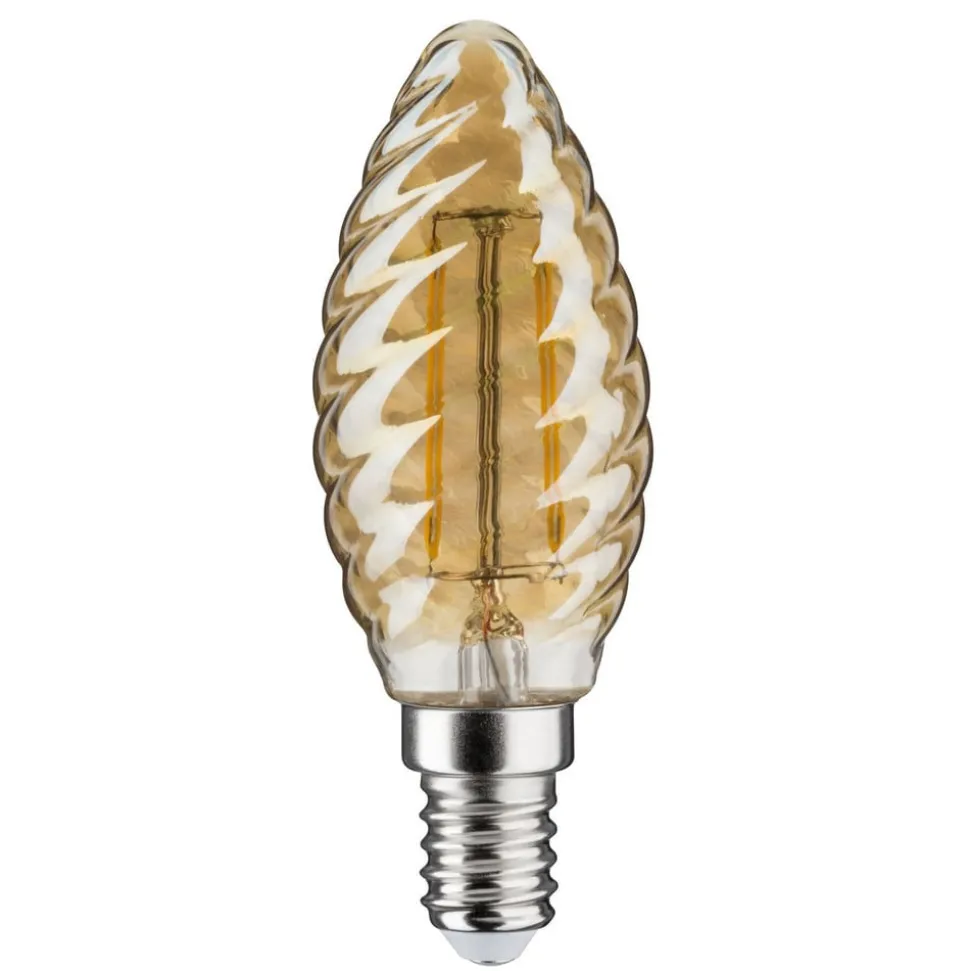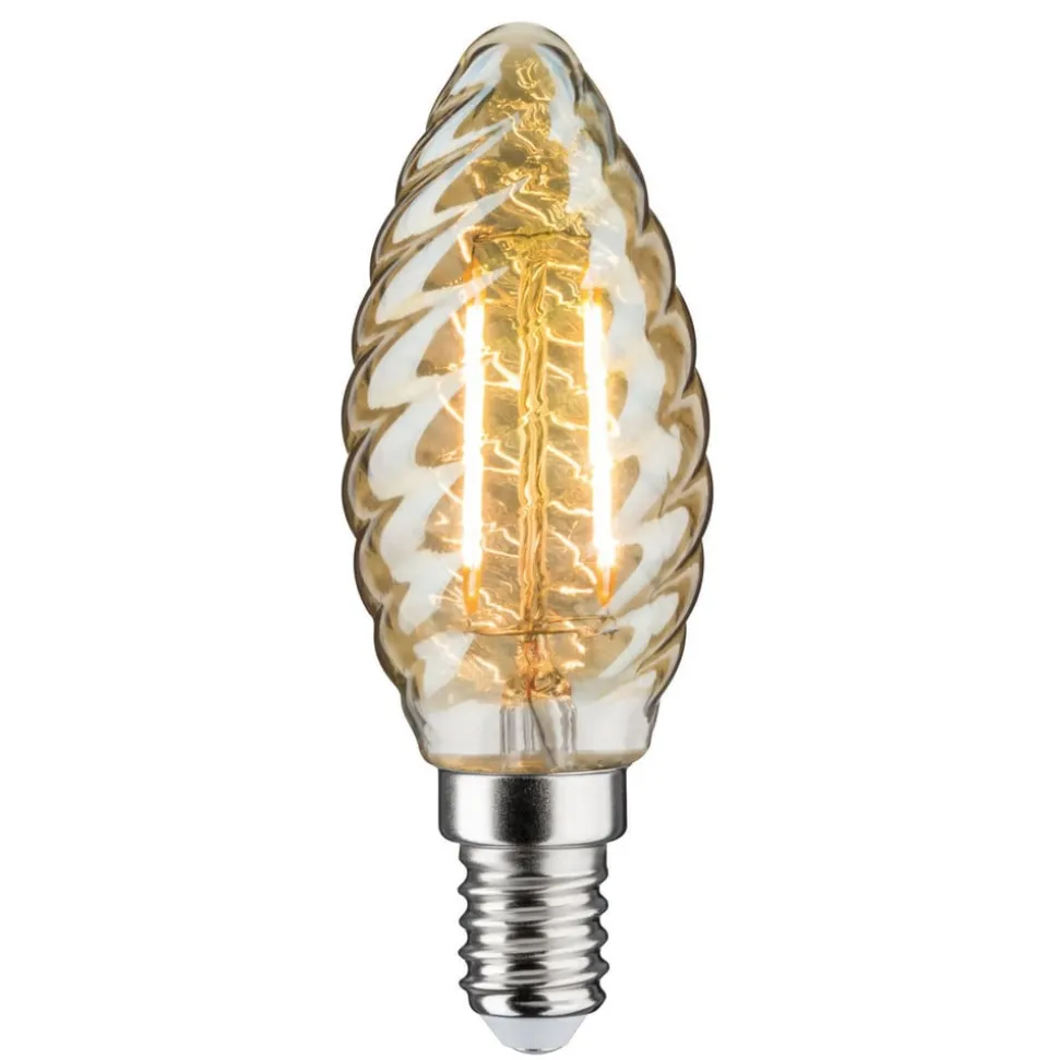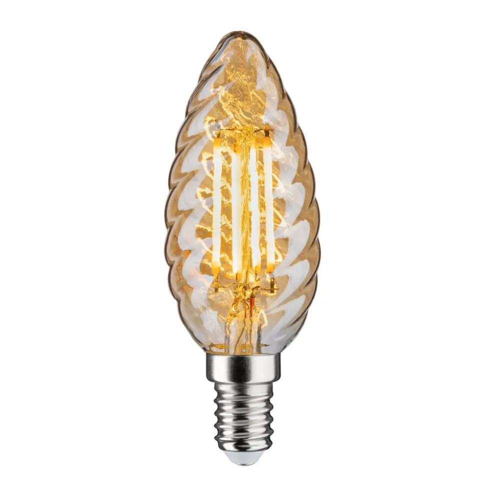 LED kaarslamp E14 met gedraaid glas in goud, 2.500K, dimbaar