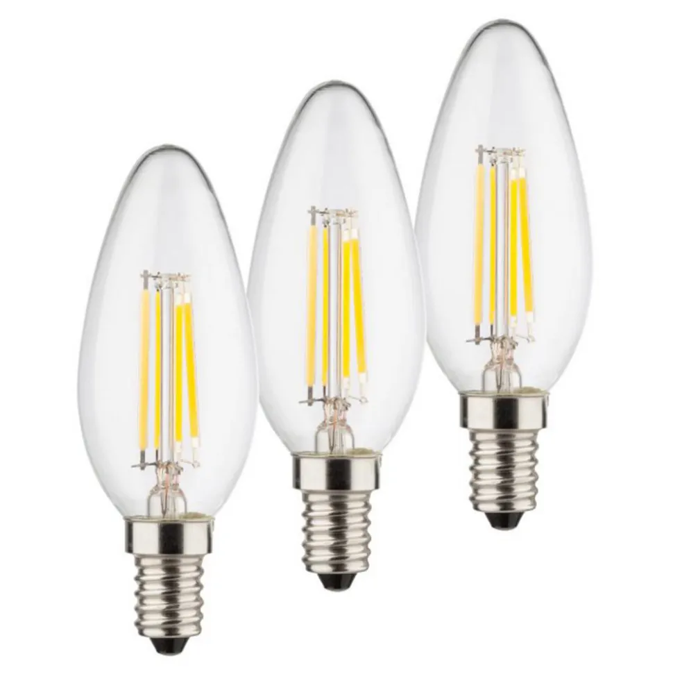 LED kaarslamp E14 4W, warmwit (2.700 K), gloeidraad, helder in een set van drie (multipack)
