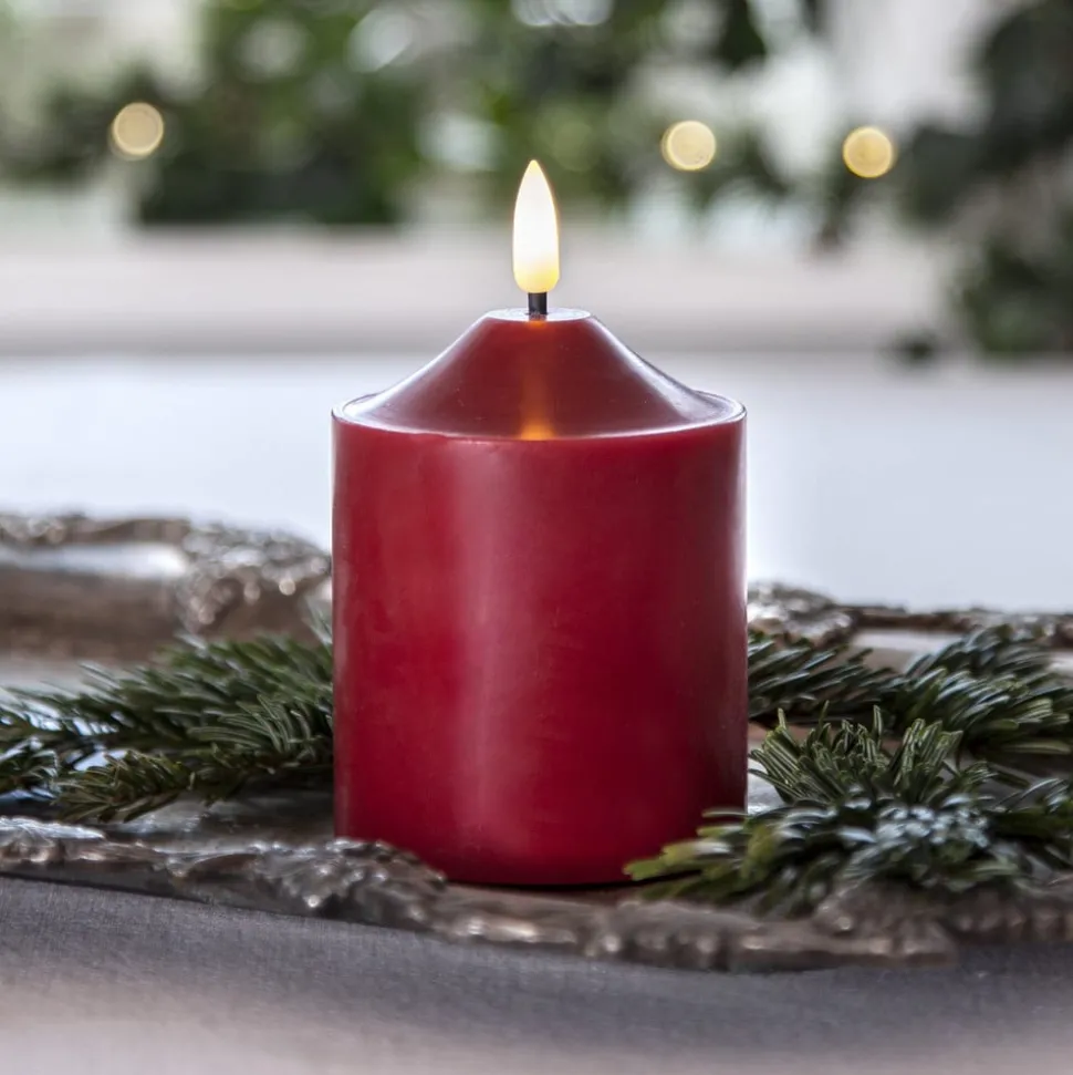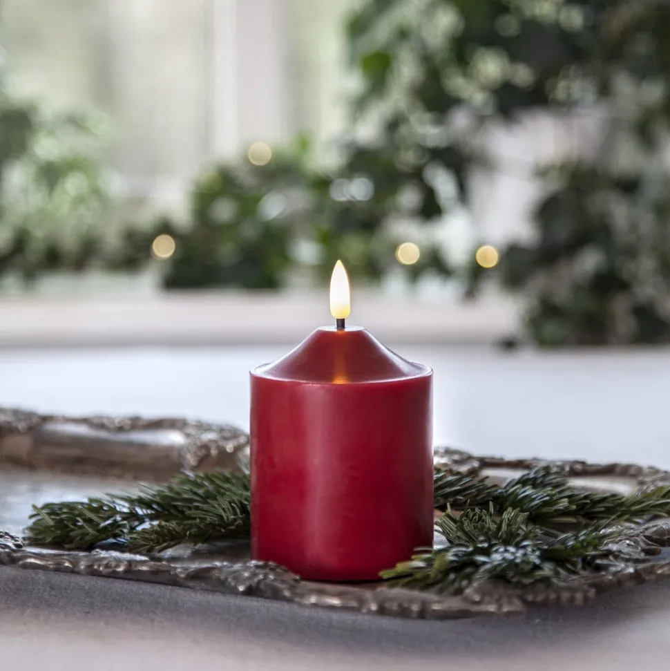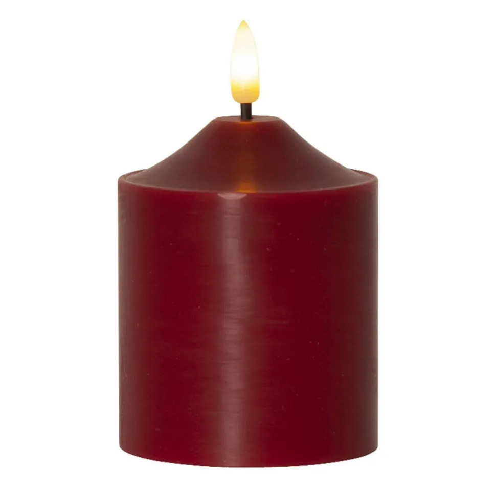 LED decoratiekaars Flame van bordeauxrode was op batterijen voor gebruik binnenshuis – met timerfunctie De LED kaars Flame is een praktische keuze, vooral voor kerstdecoraties in huis. De decoratieve kaars is gemaakt van echte, wijnrode was in de vorm van een klassieke zuilkaars. Hij kan overal worden geplaatst dankzij de werking op batterijen (2 x AA – exclusief). Hij kan automatisch worden ingeschakeld met een timer (6 uur aan, 18 uur uit).