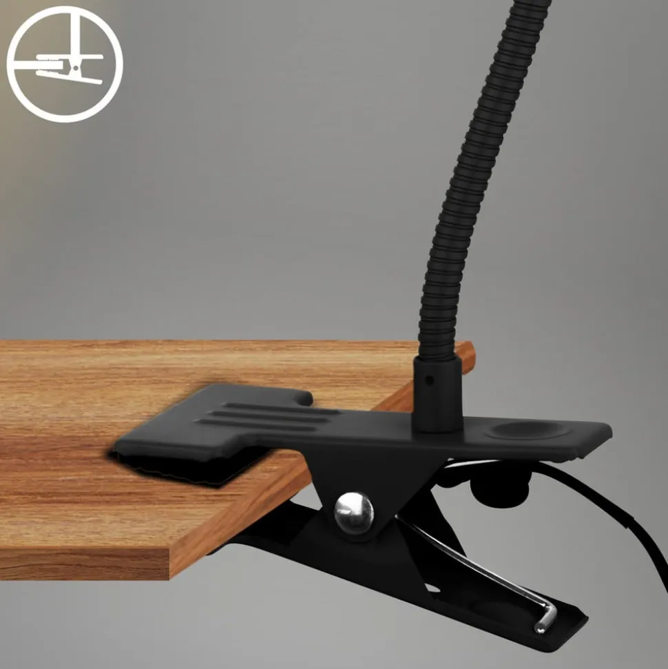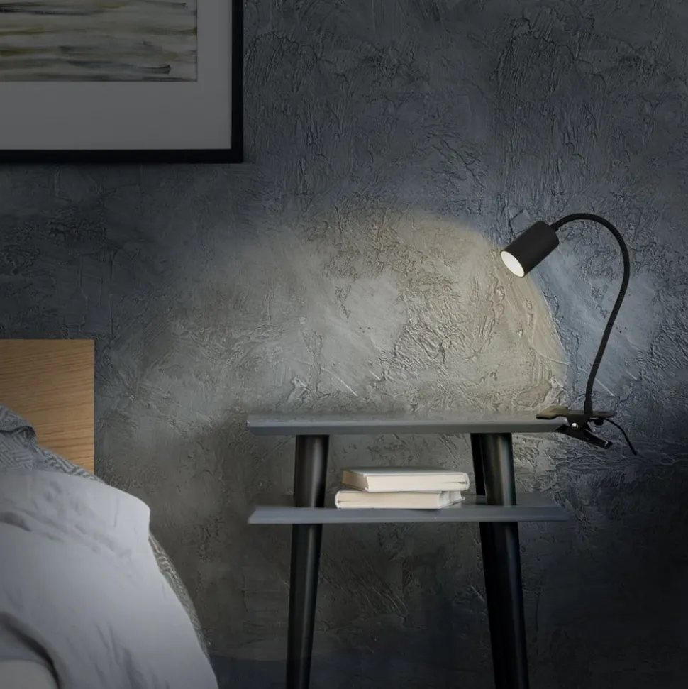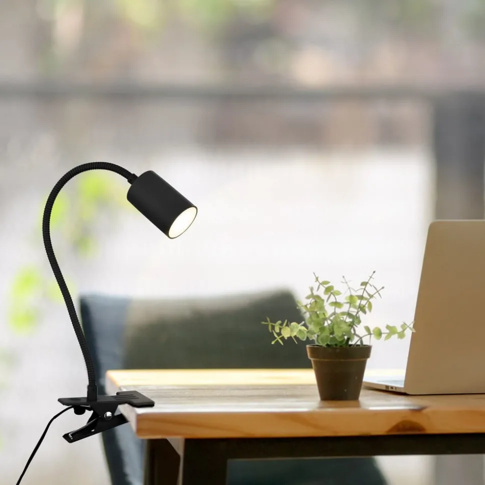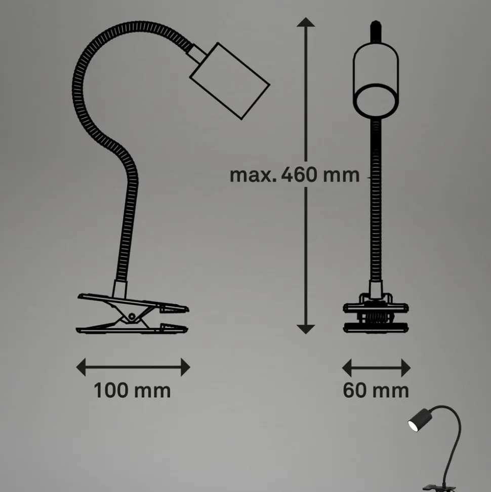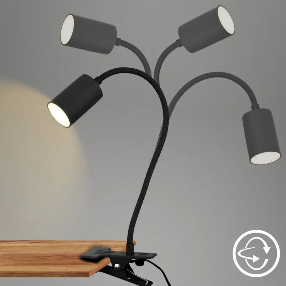 LED klemlamp Fleks, zwart, flexibel, metaal