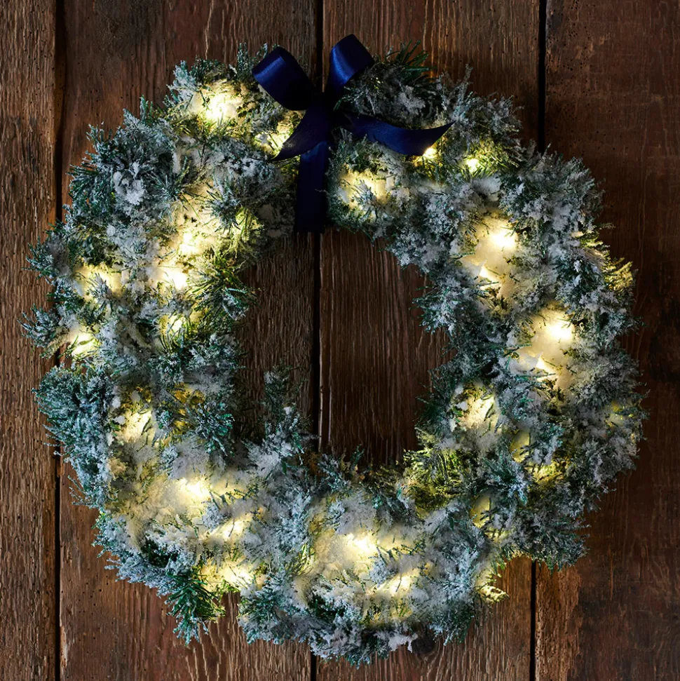 Decoratief verlichte Anton LED krans voor binnenhuisdecoratie De eenvoudige groene Anton krans met blauw lint is bijzonder decoratief dankzij het puristische ontwerp. Hij siert ramen en deuren binnenshuis en versterkt met zijn feestelijke uitstraling de anticipatie op de mooiste feestdagen van het jaar. Anton kan worden bediend met een apart verkrijgbare afstandsbediening (zie accessoires), die het mogelijk maakt om gemakkelijk te schakelen en de inschakelduur in te stellen op 2, 4, 6 of 8 uur. – Werkt op batterijen; 2 x AA (niet inbegrepen – zie accessoires)
