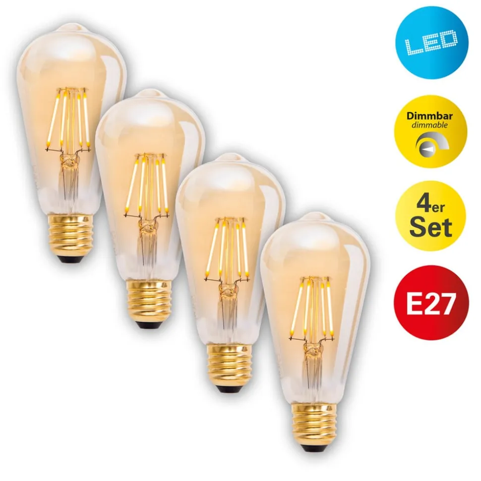 Voor een zachte verlichting is deze LED-lamp ontworpen in een rustieke vorm en met een gouden tint, waardoor ze geschikt is voor gebruik in open armaturen.