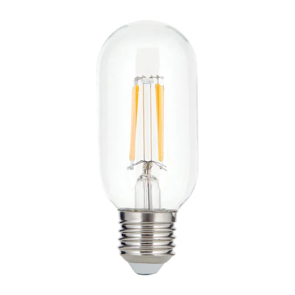 Heldere LED filamentlamp E27 8W in buisvorm met warmwitte lichtkleur, dimbaar