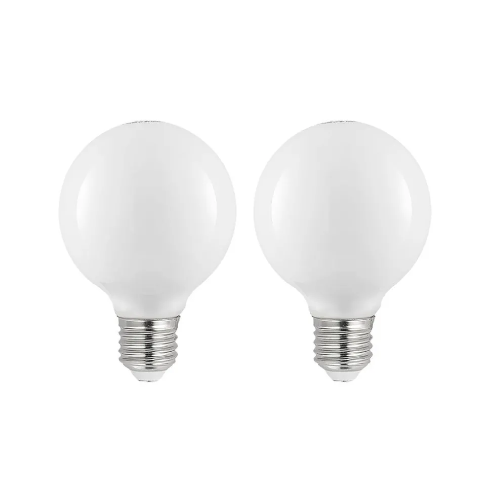 LED gloeilamp G80 E27 8 W, opaalwit, met warmwitte lichtkleur (2.700 K), set van 2 Deze LED lamp is qua helderheid gelijk aan een conventionele gloeilamp met een stroomverbruik van 70W. Het opaalwitte oppervlak voorkomt verblinding – Set van 2 lampen – Dimbaar met fase-afsnijdimmer en fase-afsnijdimmer
