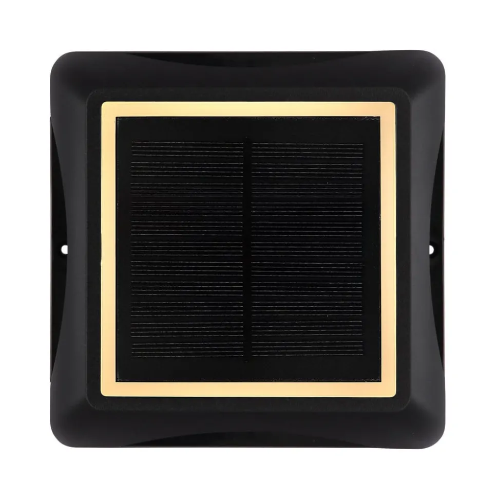 LED lamp op zonne-energie 36505 met grondspies Deze LED lamp op zonne-energie van gegoten aluminium met een matzwarte afwerking en een kunststof diffuser overtuigt door zijn veelzijdigheid – hij kan met een grondspies in de grond worden gestoken of zonder grondspies aan een muur worden bevestigd. De vierkante armatuur is ontworpen met openingen aan elke kant en een vierkante, smalle lichtuitlaat op het oppervlak, zodat het licht aan vier kanten wordt uitgestraald. Met de schakelaar op het armatuur kunnen drie helderheidsniveaus worden ingesteld. Met een lichttemperatuur van 3000 K en beschermingsklasse IP65 is deze lamp op zonne-energie ideaal voor het verlichten van tuinpaden of als decoratieve wandlamp, bijvoorbeeld rond een trap.