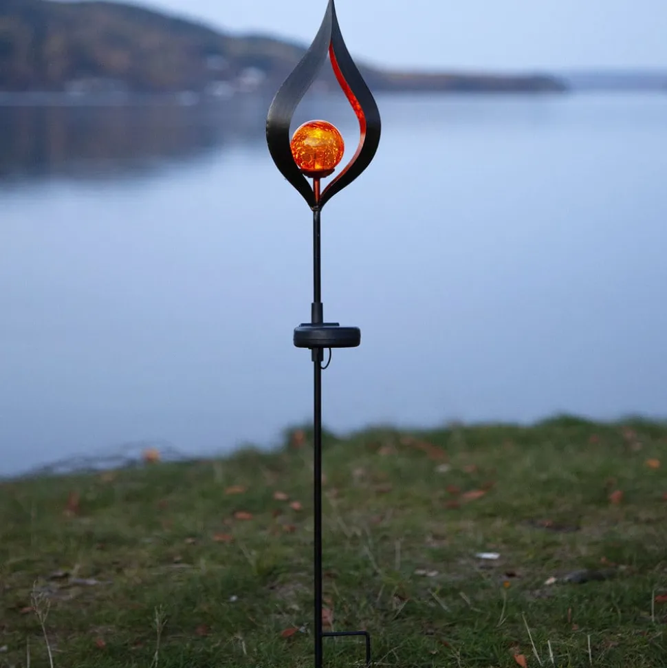 De LED lamp op zonne-energie Melilla doet denken met haar punt aan de vlam van een kaars. De bolvormige, oranje ingekleurde lampenkap is het centrum van de punt en herbergt een LED, die de leuke grondspies laat branden. Dankzij de module op zonne.energie en de herlaadbare batterij is er geen externe stroombron nodig. Bij een volledige lading van de batterij kan de sfeerlamp tot acht uur branden. Overdag schakelt de helderheidssensor de lamp uit en kan de module op zonne-energie de batterij opnieuw opladen.
