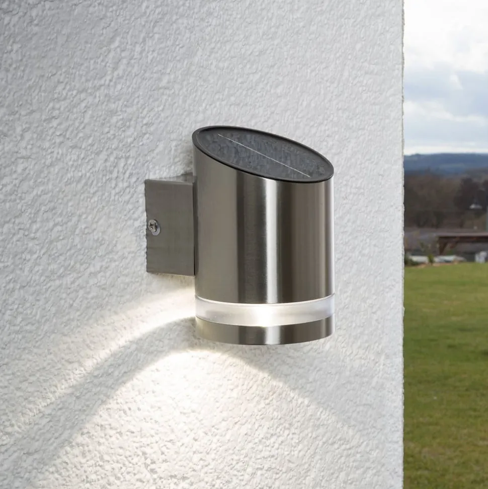 roestvrij stalen LED-wandlamp Salma op zonne-energie voor montage buiten