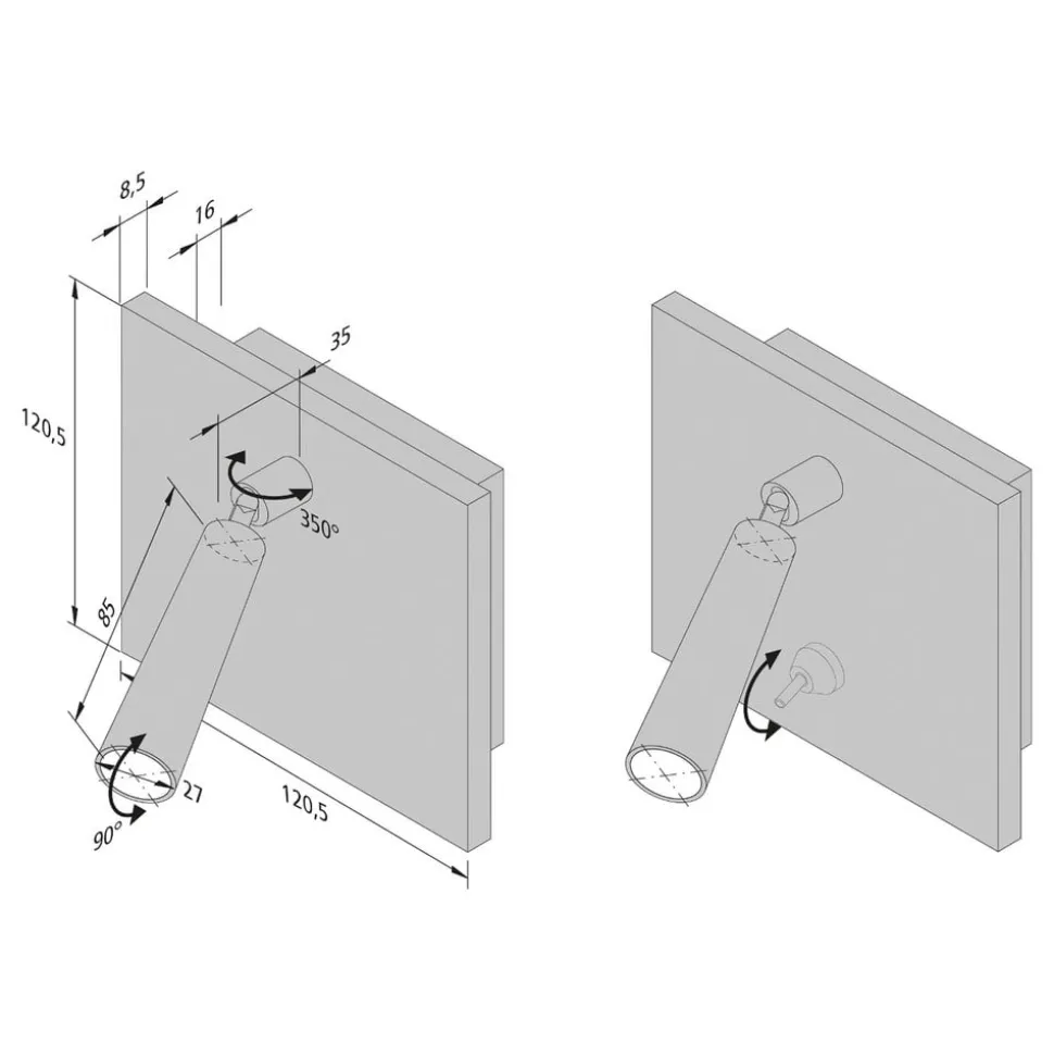 Deze eenvoudige, moderne wandlamp biedt praktisch aanvullend en leeslicht. De verstelbare armatuurkop is vormgegeven als een cilindrische spot; de geïntegreerde warmwitte LED-lichtbron straalt uit onder een gemiddelde brede hoek van 40°. BL1-LED kan rechtstreeks op de armatuur worden bediend; de aan/uit-schakelaar bevindt zich op de vierkante wandafdekking. Deze verbergt de montageplaat, waardoor de armatuur kan worden ingebouwd of aan de oppervlakte kan worden gemonteerd op muren, meubels en lambriseringen.