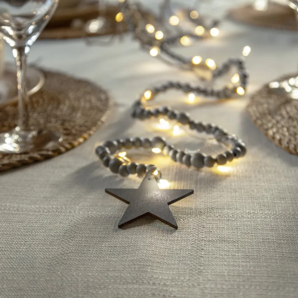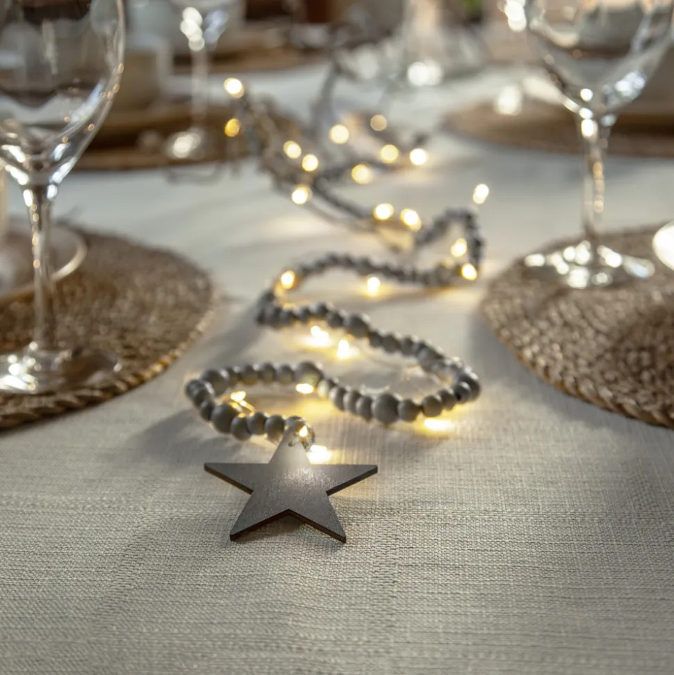 Uitgerust met kleine houten kralen – Beady LED lichtketting met batterijvoeding De Beady LED lichtketting is een feestelijke lichtdecoratie met een natuurlijk karakter voor binnenruimtes. Het is uitgerust met talrijke kleine houten kralen en een ster aan het uiteinde en heeft in totaal 30 warmwitte LED’s. Hij werkt op twee AA-batterijen (niet meegeleverd) die in een batterijvakje aan het einde van de ketting worden geplaatst. De timerfunctie (6 uur aan, 18 uur uit) maakt automatisch schakelen mogelijk.