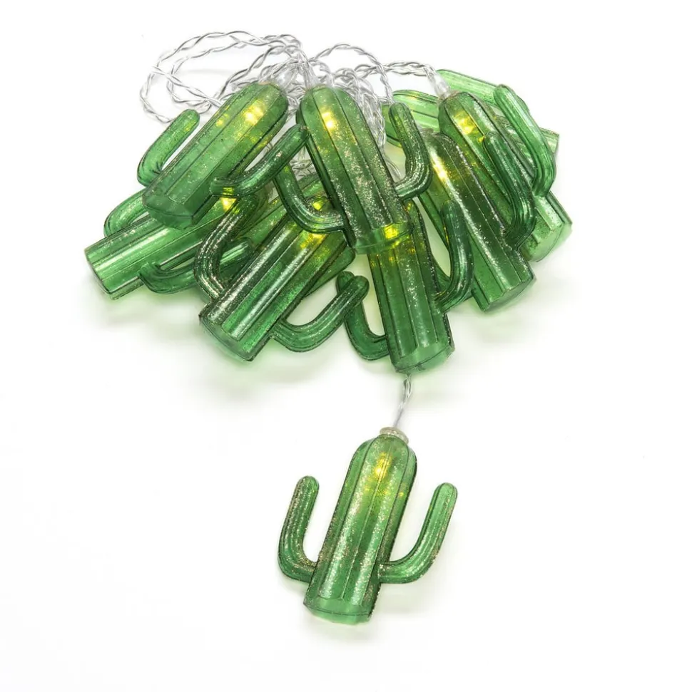 Modern, stijlvol en absoluut trendy: De batterijgevoede LED-lichtketen Cactussen is uitgerust met tien kleine kunststof cactussen, die van binnenuit met warmwitte LED’s worden verlicht. Dit maakt de lichtketen tot een discrete lichtbron en tegelijkertijd tot een koele decoratie. Hij is veelzijdig inzetbaar en heeft een praktische 6-uurstimer, die de lichtketen precies 6 uur na het inschakelen laat schijnen en na 24 uur tegelijkertijd weer begint.