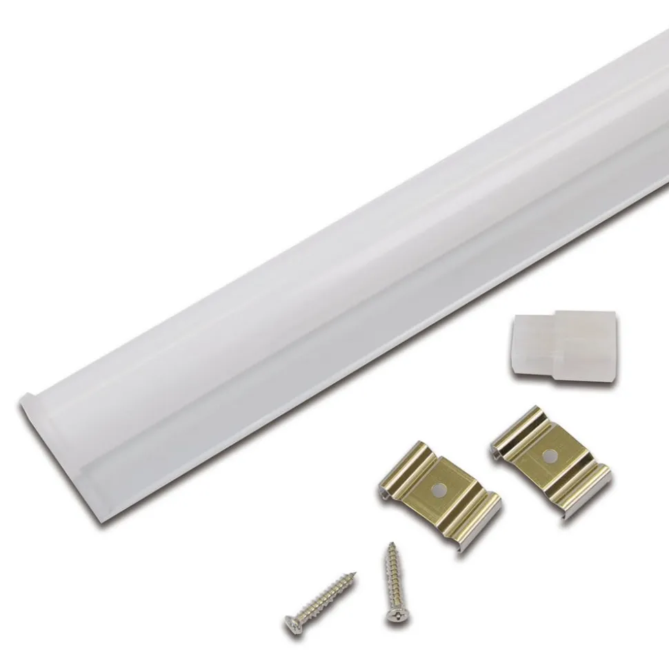 Eco-Lite F HO is een opbouw-lichtbalk met een zeer brede lichtbundel die ideaal is voor brede verlichting van rekken, kasten, displays en werkoppervlakken in droge binnenruimtes. Dankzij de kleine stijve connectoren kunnen meerdere armaturen worden gecombineerd met een minimale tussenruimte. Bevestiging is snel en eenvoudig met de meegeleverde clips en schroeven. Voor aansluiting op het stopcontact moet een passende stekker met passend stopcontact afzonderlijk worden aangeschaft (zie accessoires).
