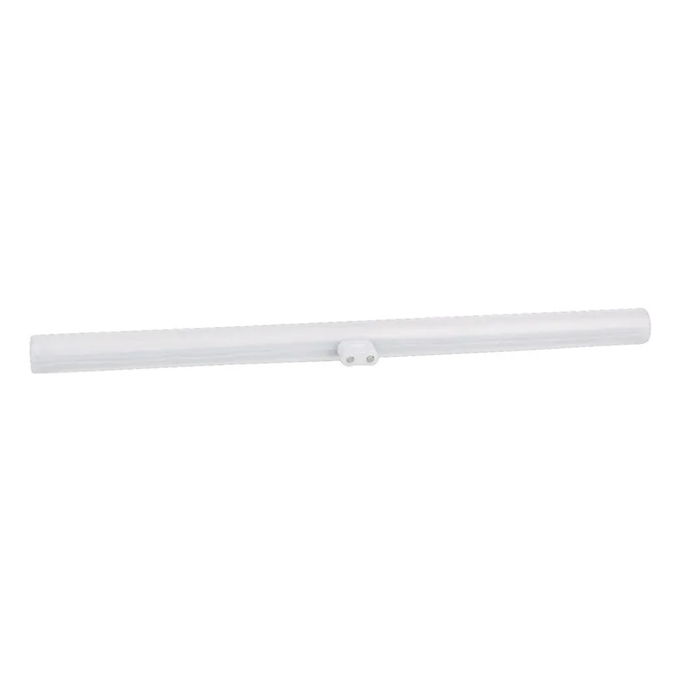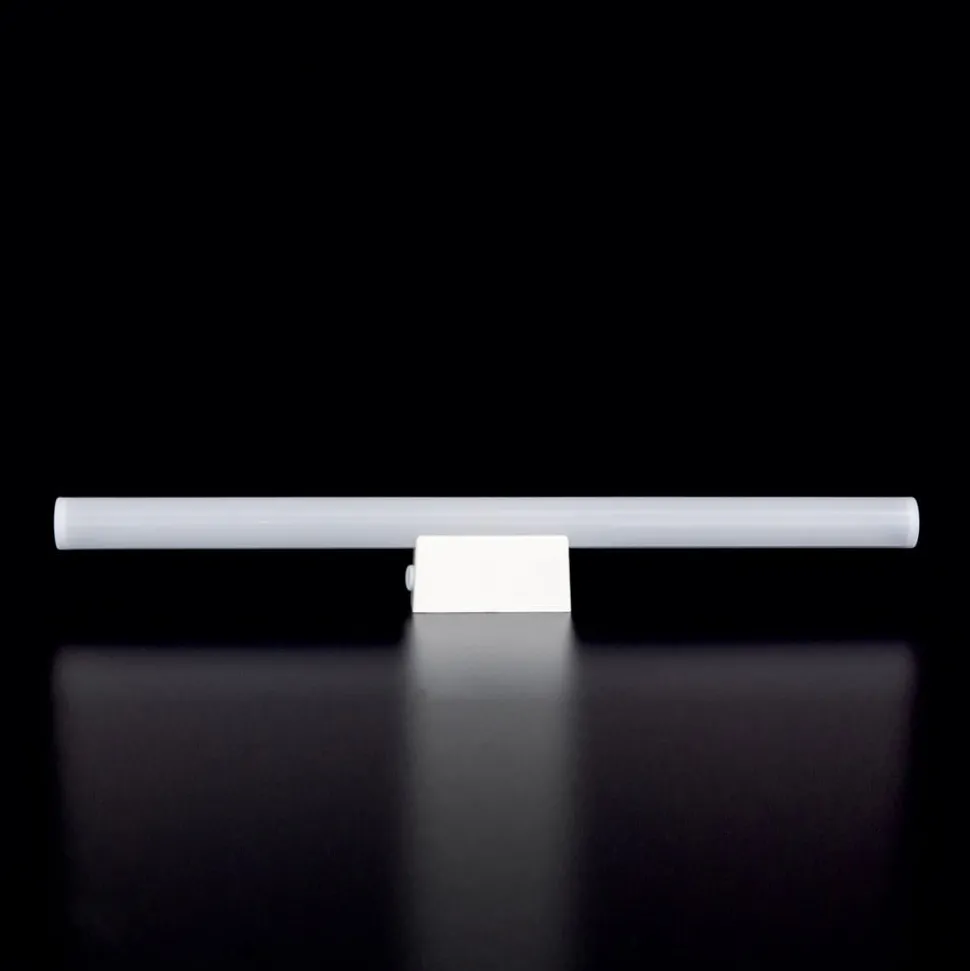 De S14d LED lijnlamp is perfect als spiegelverlichting. Het straalt warm wit licht uit dat door de opaalwitte kap schijnt zonder te verblinden.