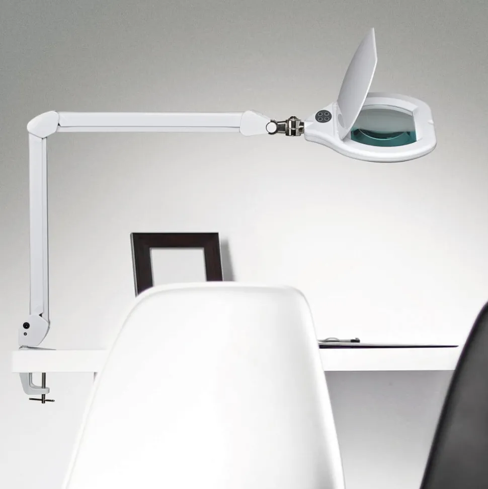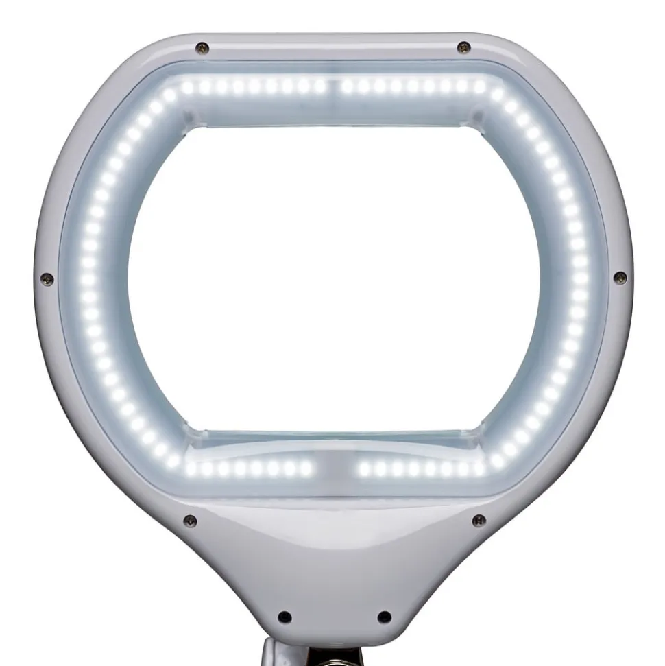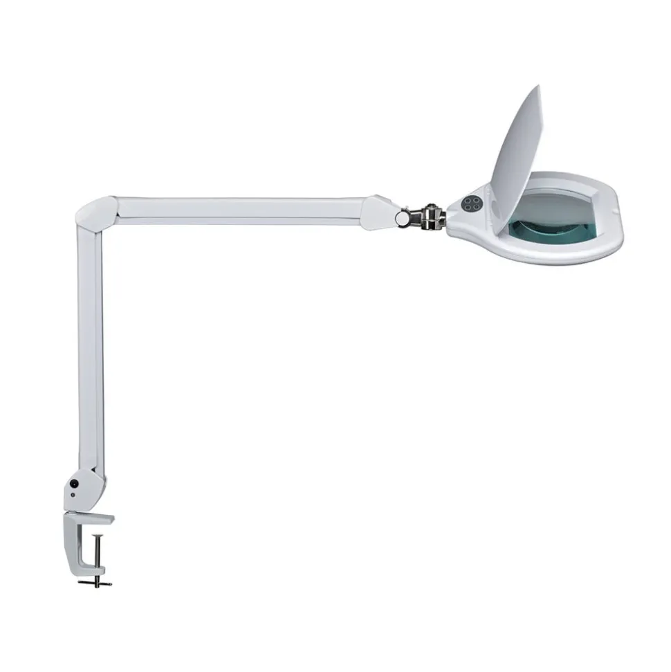Dimbare LED loeplamp MAULcrystal De LED loeplamp is bijzonder geschikt voor nauwkeurig werk. MAULcrystal kan daarom niet alleen in laboratoria worden gebruikt, maar ook voor fijnmechanisch werk thuis. Naast het gebruik van het ingebouwde vergrootglas kan de helderheid ook worden aangepast met de geïntegreerde dimmer om een goed verlicht werkgebied te creëren. Bovendien kunnen de LED’s van de lamp in drie zones worden geschakeld, wat betekent dat de LED’s niet alleen volledig schijnen, maar ook afzonderlijk alleen aan de linker- of rechterkant kunnen worden bediend. Omdat de schakelaars zich op de lampenkop bevinden, is een gemakkelijke bediening gegarandeerd. De praktische beschermkap beschermt tegen invloeden van buitenaf, zoals stof of zonlicht. De metalen arm kan 360° worden gedraaid voor gedetailleerd werk en de lampenkop kan ook worden versteld. De loeplamp kan flexibel worden bevestigd dankzij de kunststof gecoate metalen klemvoet – Verlichtingssterkte: 2840 lux op een afstand van 35 cm – Klembreedte: 1 tot 6,3 cm