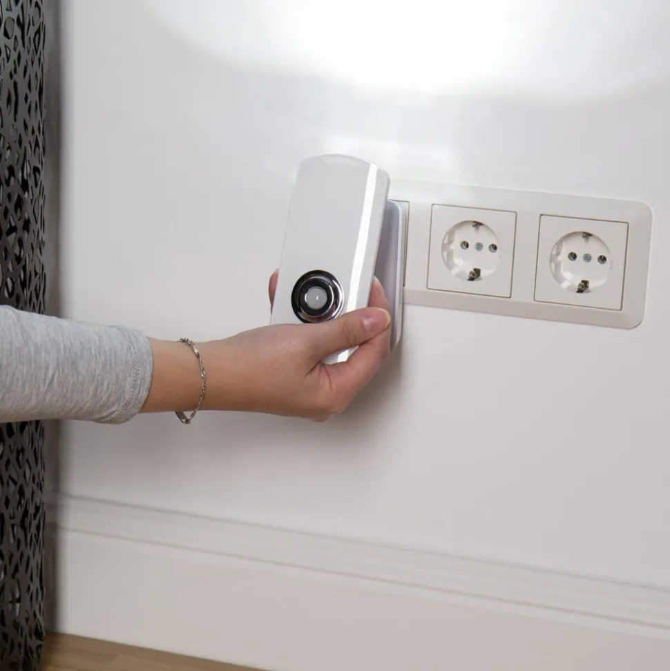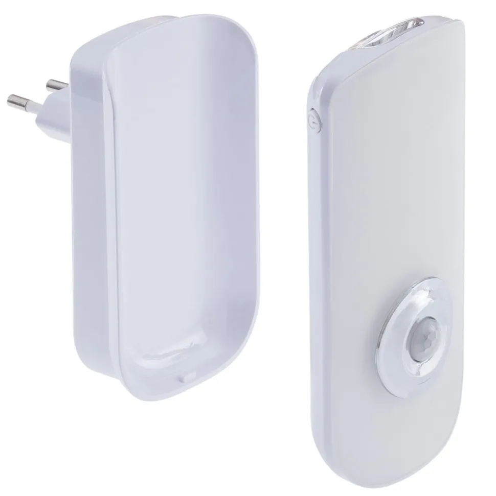 Nox LED nachtlampje voor in het stopcontact – uitgerust met een bewegingsmelder Het kleine LED stopcontactlampje Nox dient als praktisch oriëntatielicht voor ’s nachts. Nox werkt rechtstreeks vanuit het stopcontact en is uitgerust met een sensor die het licht alleen activeert wanneer dat nodig is. Het is een veelzijdig en voordelig accessoire. De stopcontactlamp kan op verschillende manieren worden gebruikt en biedt oriëntatie en veiligheid in bijvoorbeeld kinderkamers, gangen, slaapkamers of kelders. Nox Sensor heeft zowel een bewegings- als een schemersensor. Beide zijn permanent geactiveerd en schakelen het licht in wanneer ze beweging detecteren bij schemering. Na 25 seconden zonder beweging schakelt het licht automatisch weer uit, zodat er geen onnodige energie wordt verbruikt. Bijzonder praktisch: Nox Sensor kan ook worden gebruikt als zaklamp en heeft een noodlichtfunctie. Als de stroom uitvalt, schakelt de zaklamp automatisch aan dankzij de accu – Nachtlampfunctie (warmwit licht (2.700 K)) – Zaklampfunctie (daglicht wit licht (6.500 K)) – Energiebesparende LED technologie met een duurzame, vast geïnstalleerde LED – Inclusief 1 x oplaadbare Li-ion TOP 1,85 Wh batterij – Detectiehoek van de sensor 60° – Lichtduur 25 seconden – Detectieradius 3 meter