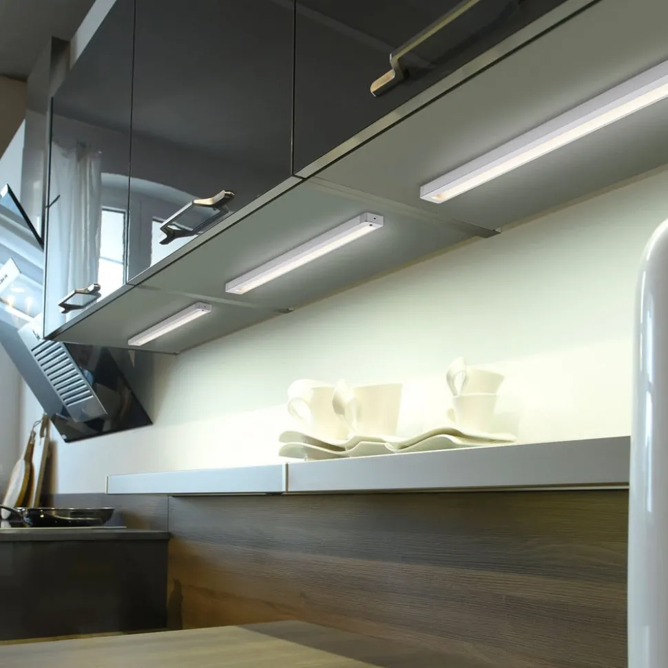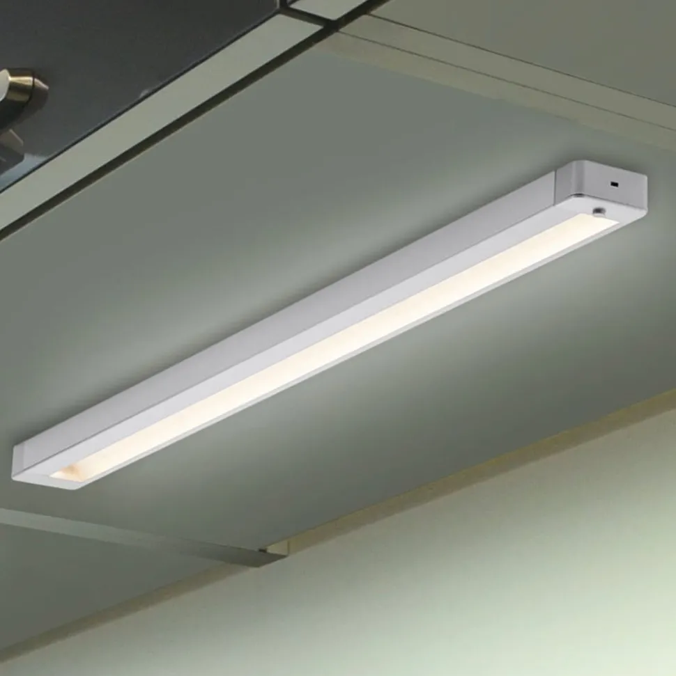 De rechthoekige Helena opbouwmeubelarmatuur met een lengte van 59,5 cm is bijzonder geschikt voor gebruik onder bovenkasten in de keuken. Hier zorgt de LED-printplaat voor een brede, warmwitte verlichting. Helena is ook geschikt voor meubelmontage. De uit te snijden groef moet 58,5 cm lang, 3,5 cm breed en 1,2 cm diep zijn. Voorzien van drukknopschakelaar, voedingskabel en stekkertransformator.
