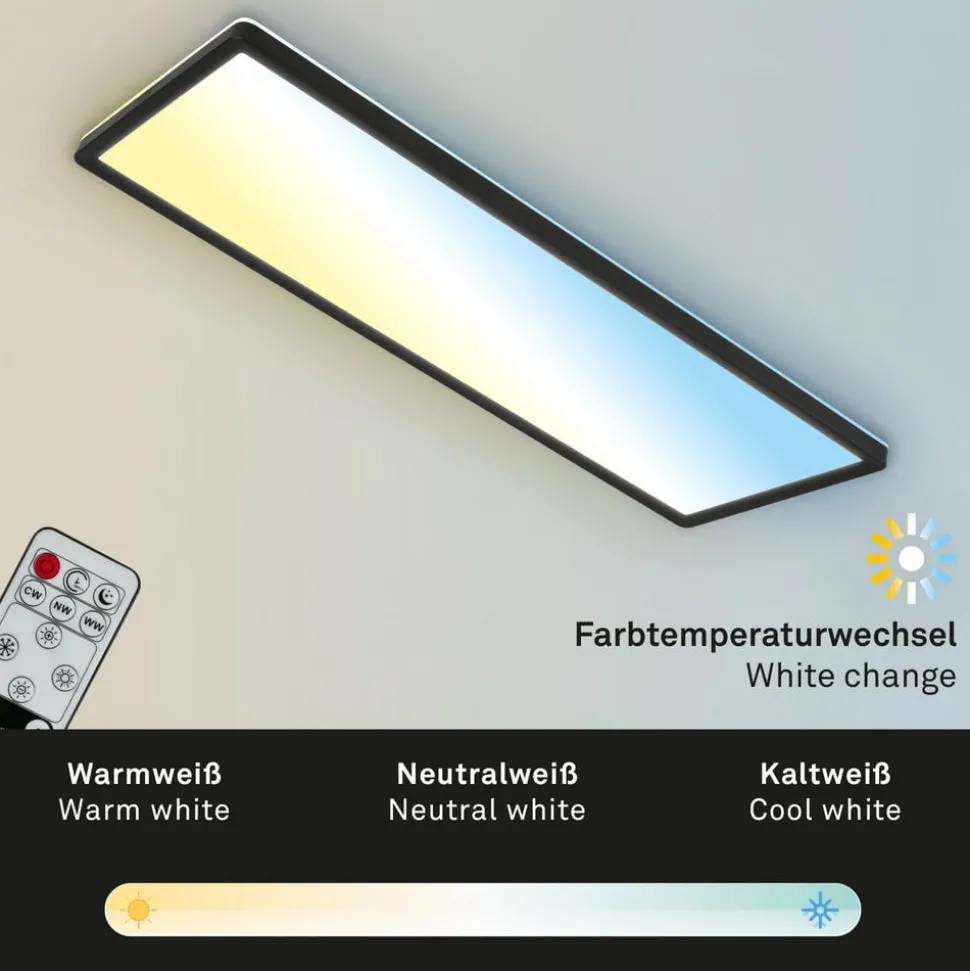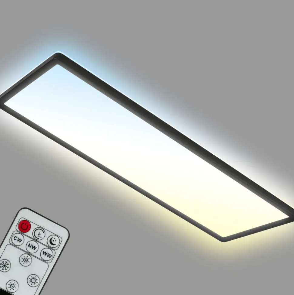 Zwart LED paneel Slim – multifunctioneel verstelbaarHet LED paneel Slim is de perfecte keuze voor iedereen die op zoek is naar moderne en stijlvolle verlichting. Met zijn ultraslanke ontwerp en elegante zwarte kunststof frame past hij perfect in elk huis of kantoor. Met de meegeleverde afstandsbediening kan de kleurtemperatuur van het licht worden aangepast van lichtkleurig warm wit tot daglicht. Bovendien is het paneel dimbaar en heeft het een backlight-effect dat voor extra accenten zorgt. Een ander pluspunt is de timer van 30 minuten die het paneel automatisch uitschakelt. En als er ’s nachts zacht licht nodig is, kan het nachtlampje worden ingeschakeld. Bijzonder praktisch is de doe-het-zelf-knop waarmee je tot vier instellingen kunt opslaan.