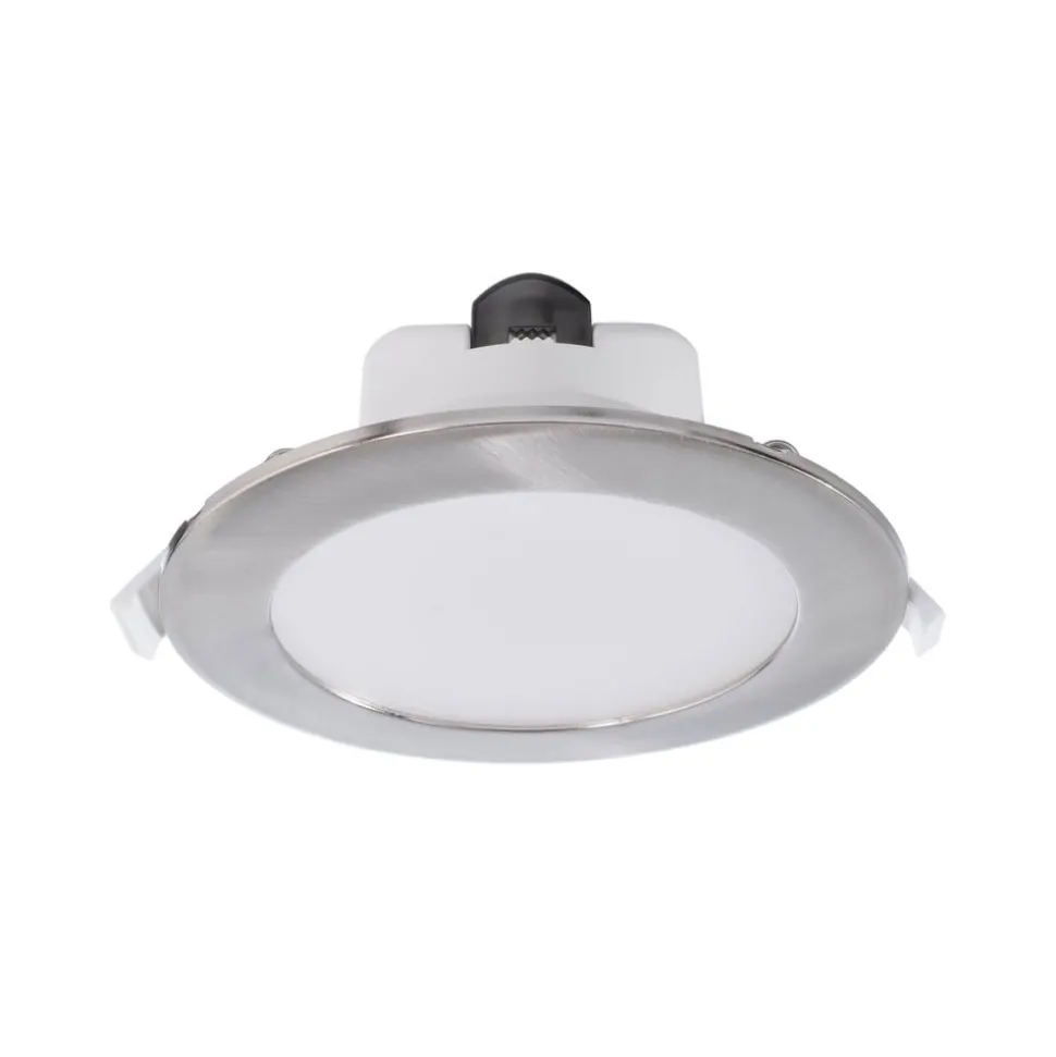 Ronde LED plafond inbouwlamp Acrux met schakelaar voor lichttemperatuurregeling Vóór installatie kan de lichttemperatuur van Acrux worden aangepast met een schakelaar aan de achterkant, waardoor deze geschikt is voor gebruik in veel verschillende ruimtes. Je kunt kiezen tussen warmwit, universeel wit en daglicht. Het armatuur kan ook worden gedimd met een fase-afsnijdimmer, wat een enorme flexibiliteit biedt. Acrux is gemaakt van wit kunststof en wordt geleverd met een zilverkleurige afdekking, die indien nodig gemakkelijk kan worden verwijderd. De geïntegreerde diffuser vermindert de schittering van het licht en creëert een aangename sfeer. 90° stralingshoek – Lichtkleur kan vóór installatie worden ingesteld met een schakelaar
