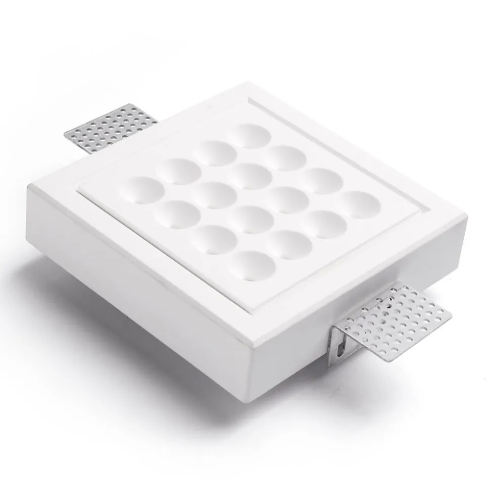 De Ade LED-inbouwarmatuur is gemaakt van hoogwaardig gips en kan eenvoudig worden geïntegreerd in lichte plafonds. Het frame kan echter na installatie in elke gewenste kleur worden geverfd, wat de mogelijke toepassingen nog flexibeler maakt.