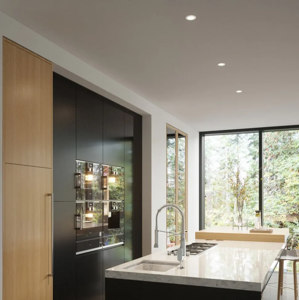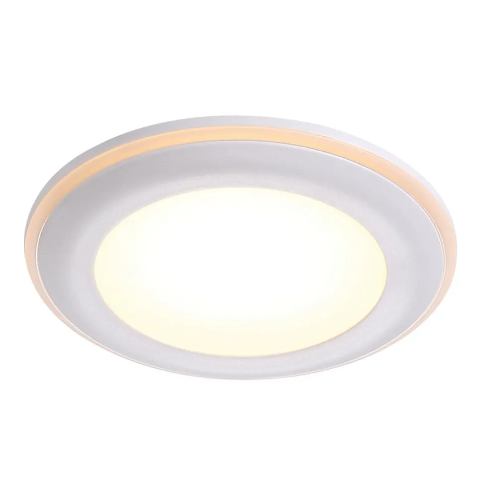 Ronde LED inbouwspot met verlichte buitenring Die Elkton plafond inbouwlamp heeft een cirkelvormig ontwerp en is gemaakt van wit kunststof. Ze wordt gekenmerkt door de MoodMaker™-functie. Die zorgt voor een gelijktijdige en afzonderlijke activering van de centrale cirkel, de buitenste smalle ring en de volledige LED’s met behulp van conventionele wandschakelaars. Elkton is een visueel discrete keuze voor verstelbare plafondverlichting in Mod interieurs.