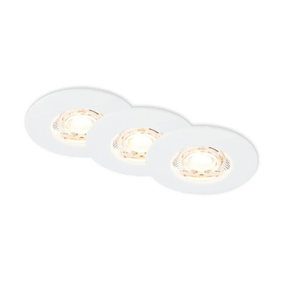 Ronde LED inbouwarmatuur Kulana Mini, warm wit, IP44, set van 3Kulana Mini is een moderne, energiezuinige vervanging voor conventionele halogeen inbouwspots. De ronde inbouwspot heeft een warmwitte LED lichtbron en een kunststof frame. Kulana Mini is niet alleen geschikt voor woonkamers en lounges, maar ook voor badkamers en spa’s dankzij de spatwaterbescherming. Bedoeld voor installatie in 5 tot 15 mm dikke plafonds, voorzien van bevestigingsveren. Drie inbouwarmaturen worden meegeleverd.