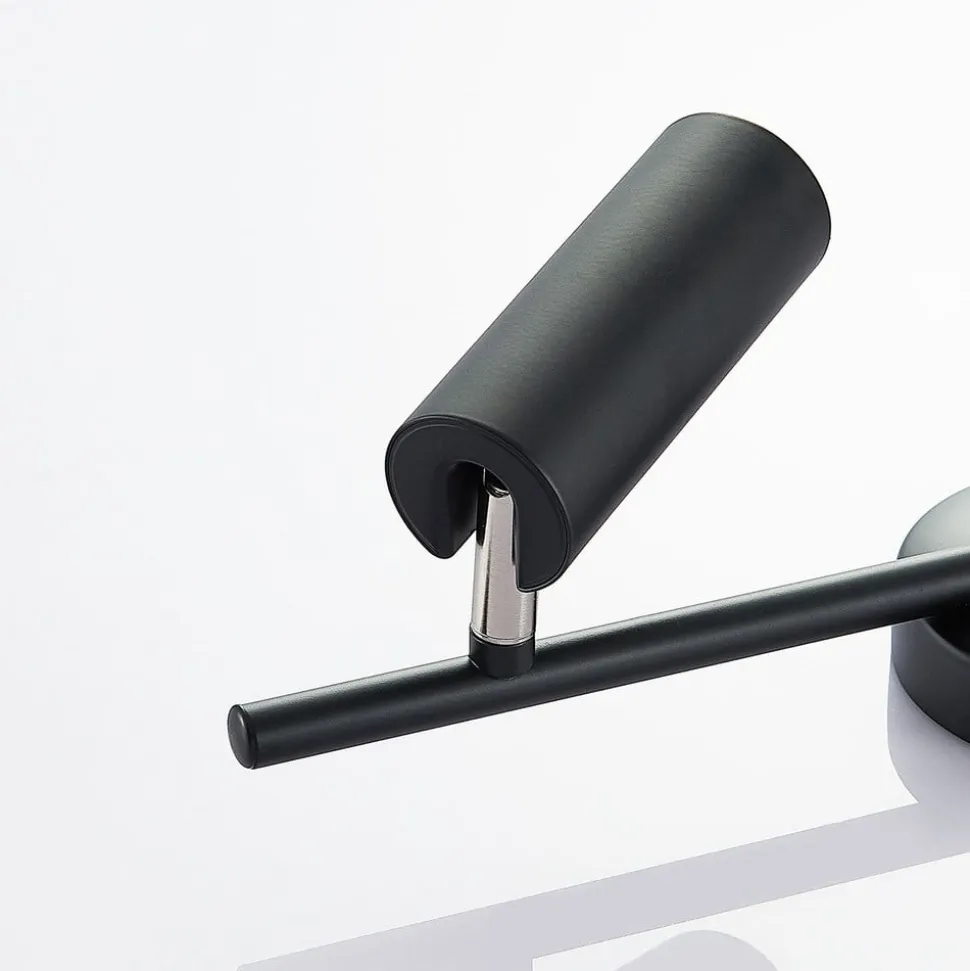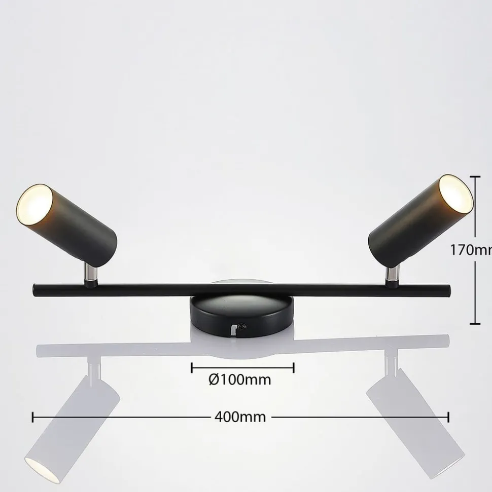 Camille is een plafondlamp, die met haar zwart oppervlak een koele elegantie uitstraalt. De bekervorm van de lampenkap en het detailloze montuur staan voor een puristische uitstraling, die prachtig met moderne stijlen kan worden gecombineerd. Om een precieze uitrichting van het licht te kunnen creëren, zijn de twee lampenkappen met scharnieren om te draaien en te kantelen uitgerust. De LED’s bevinden zich achter gesatineerd kunststof, zodat haar warmwit licht zacht en gelijkmatig in de omgeving wordt uitgestraald. Ze bezitten een goede efficiëntie en verbruiken slechts weinig stroom.