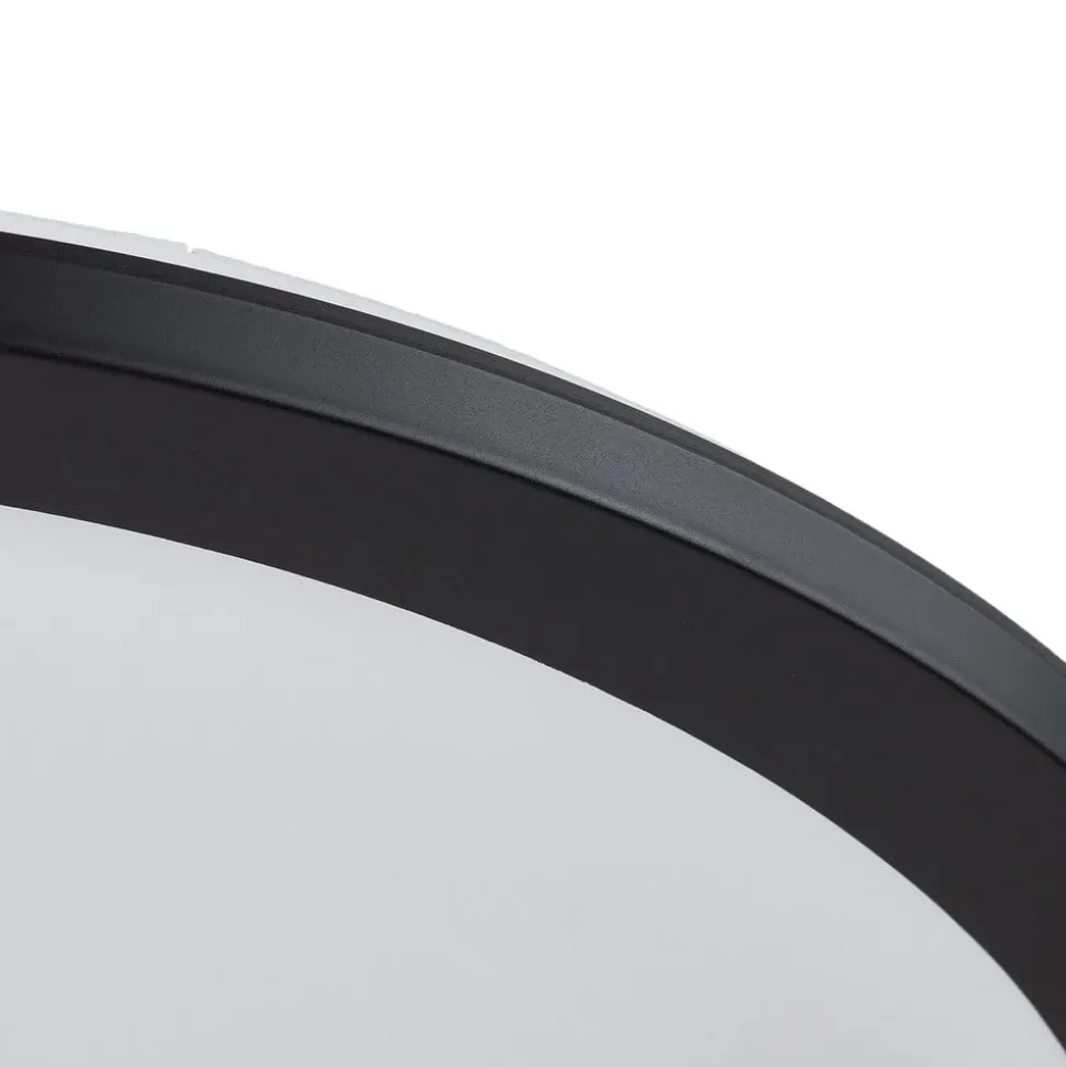 De LED plafondlamp Camillus met het zwarte kader kan ook aan de wand worden gemonteerd. Met de normale lichtschakelaar kan het licht in drie verschillende helderheidsniveaus worden gedimd. Door de beschermingsklasse IP44 is de LED plafondlamp Camillus ook geschikt voor de badkamer. Het warme witte licht verlicht de kamer gelijkmatig.