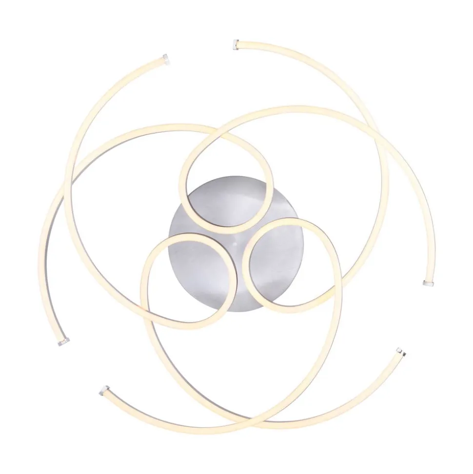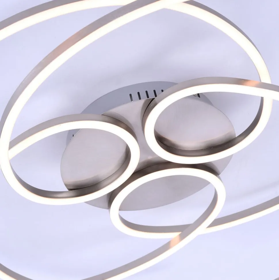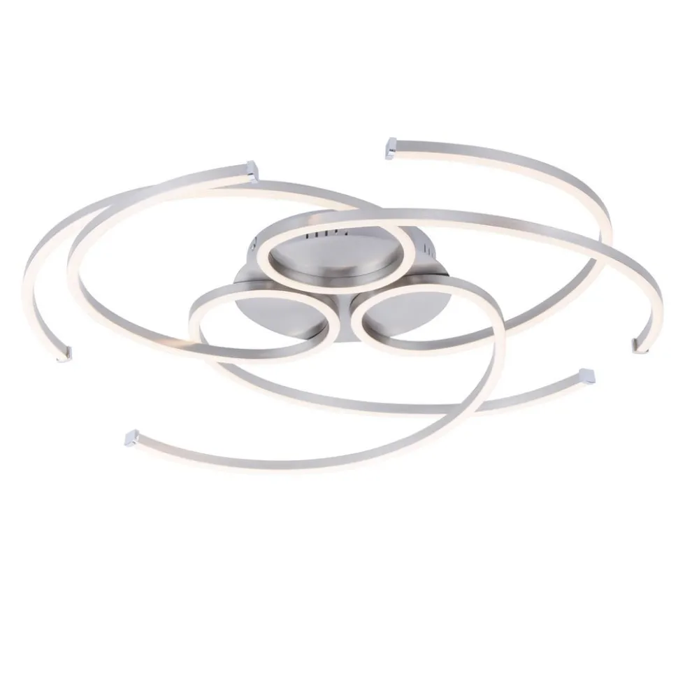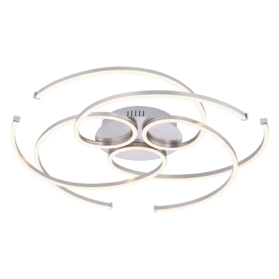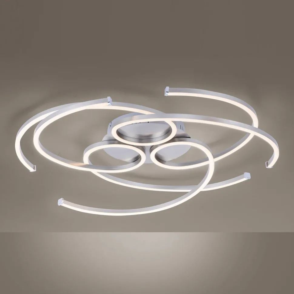 De LED-plafondlamp Danilo is een verlichtingselement dat door de gebogen lichtstaven perfect past in modern ingerichte woonkamers. De warme witte lichtkleur zorgt voor een gezellige sfeer. Aangezien Danilo over de Simply-Dim technologie beschikt, kan de helderheid worden geregeld via een conventionele wandschakelaar. Dankzij de schakelfunctie van de Simply-Dim driver kan de lichtintensiteit traploos worden aangepast van 100% lichtsterkte tot een gedimde 10%. Door de geheugenfunctie kan de gewenste helderheid bij het uitschakelen worden opgeslagen.