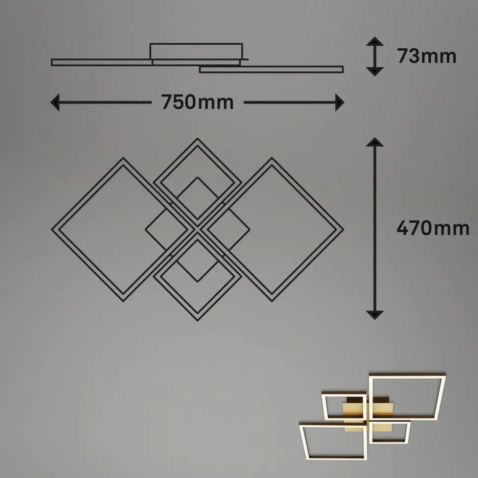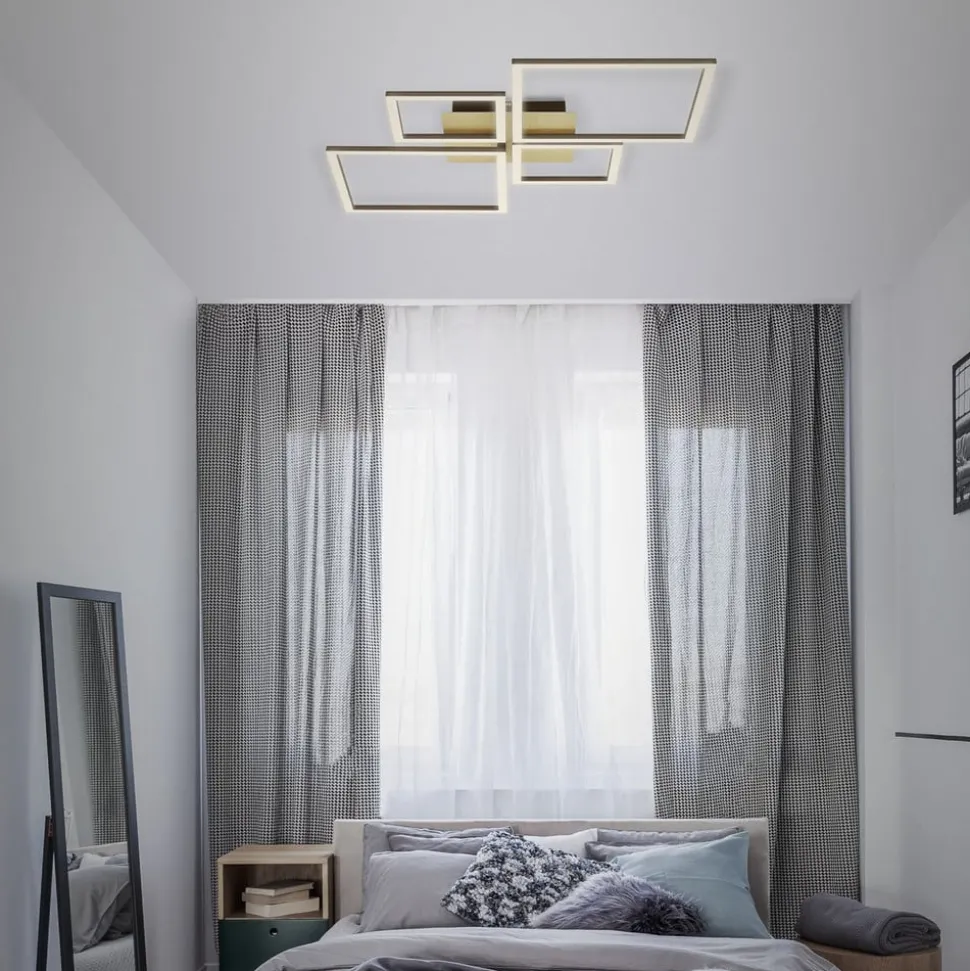 LED plafondlamp Frame, goud, dimbaar, 4-lamps