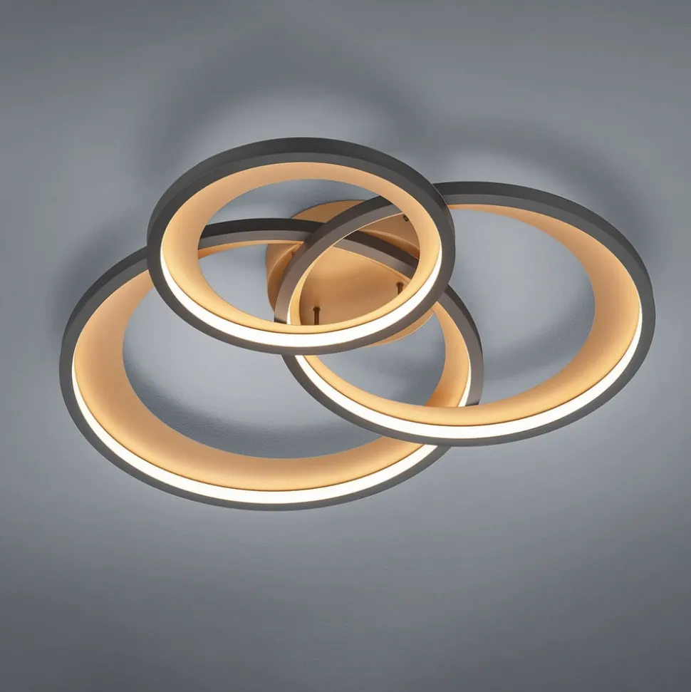 De plafondlamp Granada dient niet alleen als sfeervolle lichtbron, maar is ook overdag een echte blikvanger. De lamp bestaat uit drie ringen van verschillende grootte die elkaar visueel overlappen. Door het ontwerp en de speciale kleurstelling is de armatuur bijzonder geschikt voor moderne interieurs en verfraait ze bijvoorbeeld de gang, de slaapkamer of de woon- en eetkamer met haar opvallende design. Granada heeft ook een geïntegreerde schakeldimmer. Met een conventionele lichtschakelaar kan de helderheid in stappen worden ingesteld (100%, 50% en 25%). Zo kunnen de lichtomstandigheden op elk moment moeiteloos worden aangepast aan individuele voorkeuren.