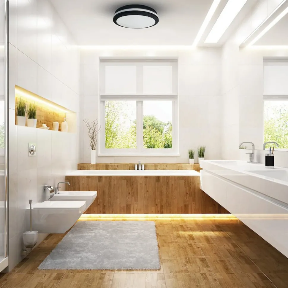 LED plafondlamp Marlon in zwart-wit design met beschermingsgraad IP54