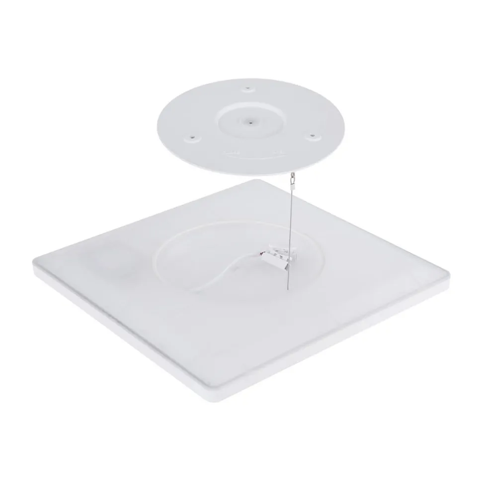 Sapana overtuigt door haar eenvoudige design en haar harmonieuze kleurstelling. Het is gemaakt van kunststof en heeft een hoekige, symmetrische vorm. De permanent geïnstalleerde LED’s zitten achter een diffuser en genereren een warm wit, niet-verblindend licht. Via een conventionele wandschakelaar kan de armatuur in drie lichtsterktes (100 %, 50 % en 10 %) worden gedimd, zodat ze altijd de juiste verlichting biedt. Het minimalistische design van de LED plafondlamp Sapana integreert zich goed in de binneninrichting.