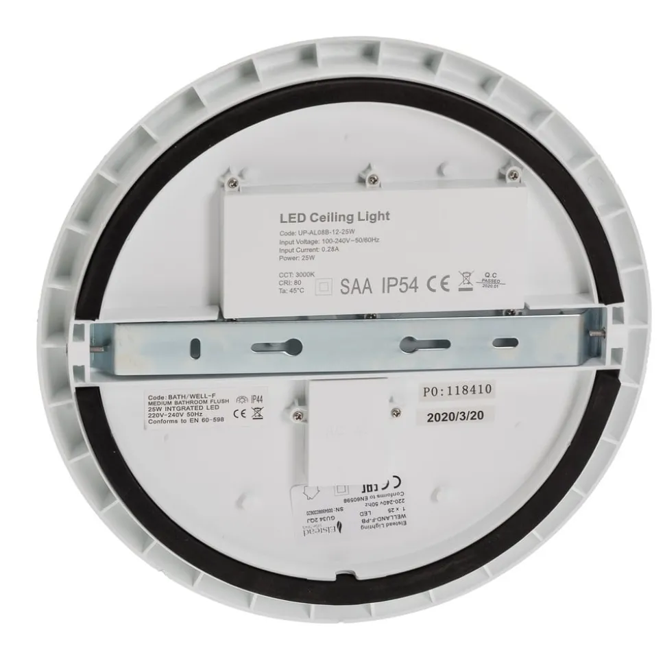 Met een relatief laag opgenomen vermogen genereren de in de ronde LED-plafondarmatuur Welland geïnstalleerde LED’s niet alleen een bijzonder hoge lichtstroom, maar blijken ze ook bijzonder energiezuinig te zijn. Om ervoor te zorgen dat het licht niet verblindt, werd ook een satijnen diffuser geïnstalleerd, die het licht zachtjes filtert en gelijkmatig in de omgeving verspreidt. Dankzij zijn IP44-beschermingsgraad is hij bij uitstek geschikt voor gebruik in badkamers.