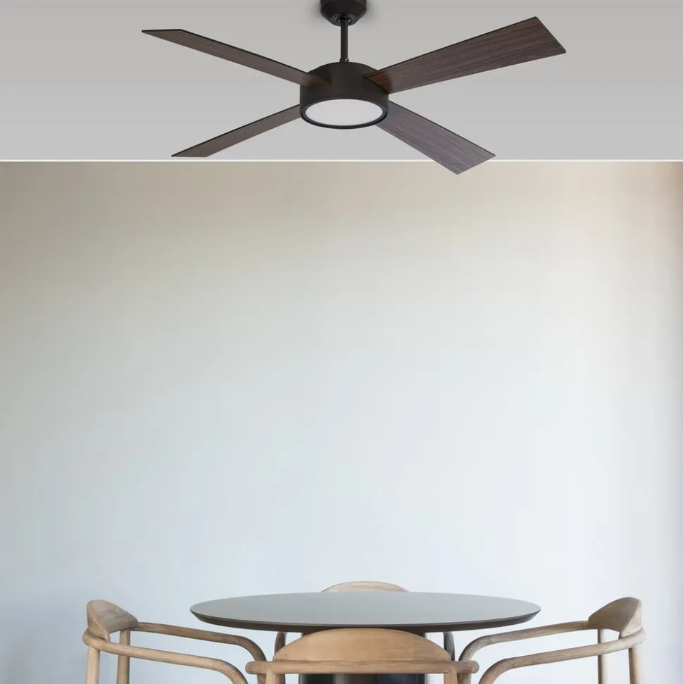 Hydra op afstand bedienbare plafondventilator met LED verlichting en vier omkeerbare bladen in walnoot en zwart