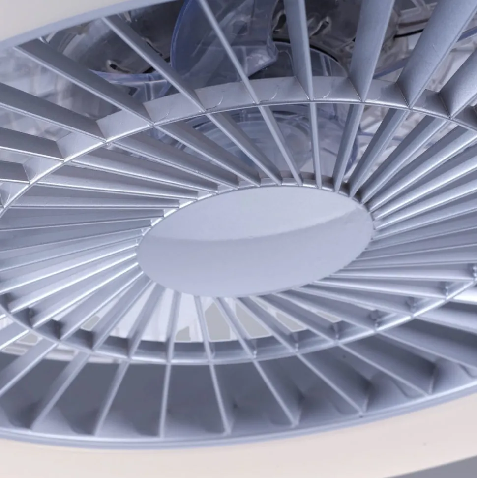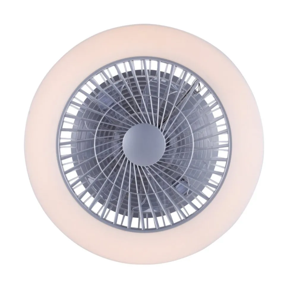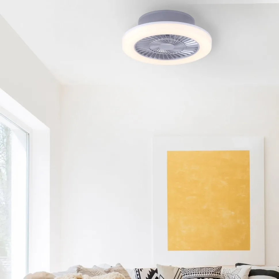 De staalkleurige LED plafondventilator Leonard is rond van vorm en gemaakt van kunststof. In het midden zit de ventilator, die omgeven is door de LED-lichtbron. Het warmwitte licht straalt verblindingsvrij naar beneden en verlicht de ruimte betrouwbaar. Dankzij een geïntegreerde serieschakelaar kunnen de ventilator en het licht onafhankelijk van elkaar worden bediend via de wandschakelaar.