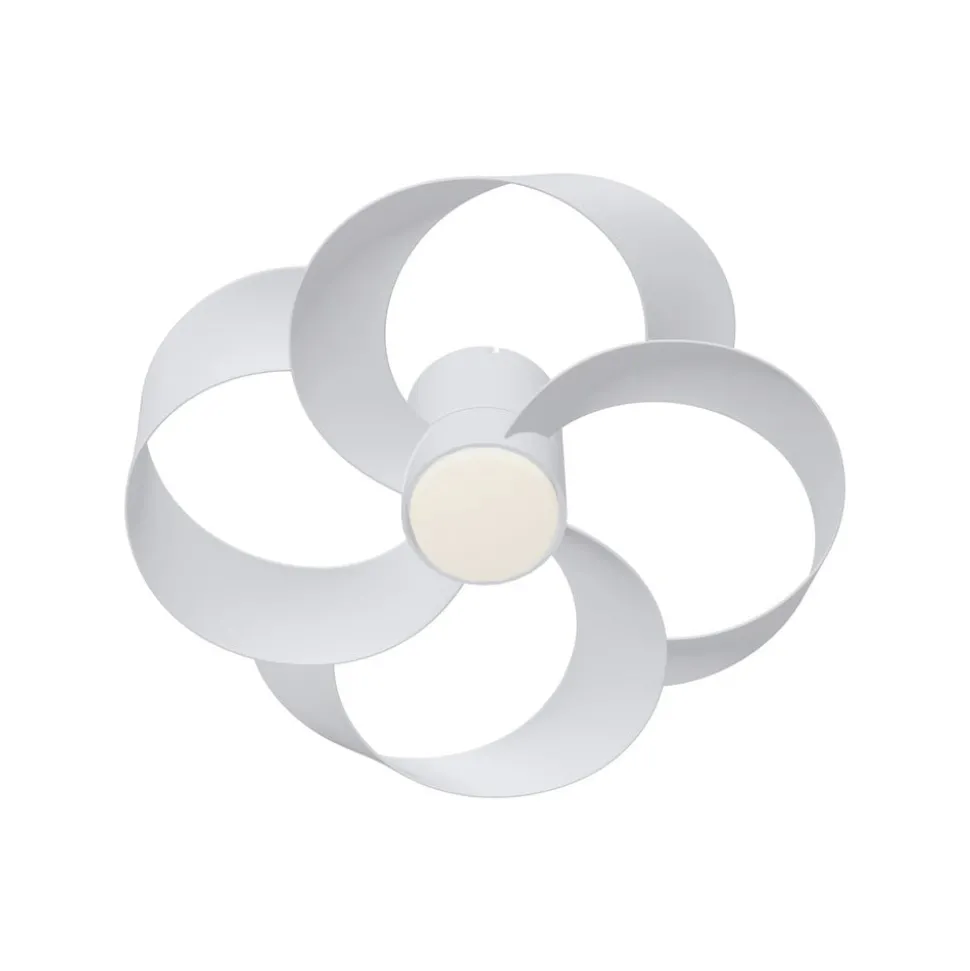 De LED plafondventilator Rose is voorzien van een karakteristieke rotor; meerdere kunststof elementen zijn gecombineerd tot vier ovale delen. Aan de onderzijde van de ronde behuizing is een krachtige LED lamp geïntegreerd, waarvan het licht dimbaar is en de lichttemperatuur kan worden geregeld. De lichtopbrengst wordt door een gesatineerde afdekking breed naar beneden verspreid. Voor de bediening wordt een afstandsbediening meegeleverd.